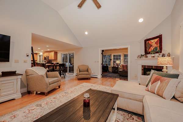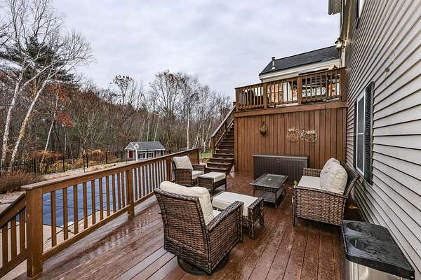Welcome to 18 Cindy Drive, Hooksett, NH! Nestled on a quiet cul-de-sac, this beautifully maintained 4-bedroom, 3.5-bath Colonial offers the perfect blend of comfort, space, and privacy on 3.83 landscaped acres. Built in 1997, this 2,846 sq. ft. home features a bright, open-concept layout ideal for entertaining and everyday living. The main level includes a spacious kitchen that flows into the dining and living areas, plus a charming sunroom with a pellet stove--a cozy retreat year-round. Upstairs, you'll find four generous bedrooms, including a primary suite with an en suite bath and ample closet space. The finished walkout basement provides additional living or recreation space with easy access to the backyard. Step outside to enjoy two levels of decks, perfect for outdoor dining and relaxation, overlooking the heated inground pool and private wooded setting. Mature landscaping surrounds the property, creating a peaceful retreat just minutes from shopping, dining, and commuter routes. Located within the sought-after Pinkerton Academy school district, this home offers the best of New Hampshire living--space, style, and serenity--all in one exceptional property.
