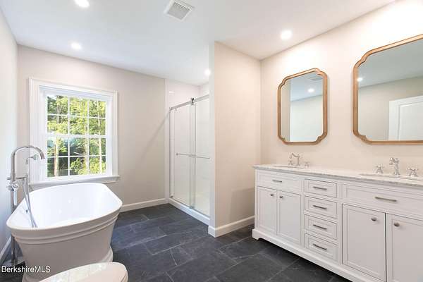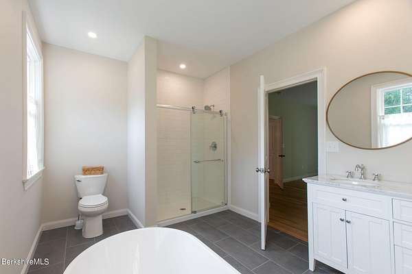 BEAUTIFUL 2023-BUILT HOME WITH COMMUNITY POOL AND TENNIS. Set in a small country neighborhood, this stunning 4 Bedroom home is perfect for entertaining friends and family. The 1st floor features an open kitchen/dining area with granite countertops and high ceilings, a sunken living room with a cozy propane fireplace, and a large bedroom suite. Sliding French doors flood the space with natural light and open onto a 50-ft mahogany deck overlooking the backyard. Upstairs the 2nd floor features a generous primary suite and walk-in closet, along with 2 additional bedrooms that share a full bath with laundry. The unfinished 3rd floor has high ceilings and potential for an additional 1,620 square feet of living space. This energy-efficient home has a HERS energy score of 55 and is equipped with a ductless HVAC system and spray foam insulation. 9 miles to Butternut. 12 miles to Great Barrington. Vashti Poor, Lance Vermeulen RE (413) 329-8262 vashtipoor@gmail.com