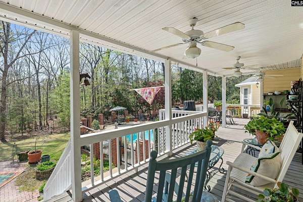 Have you been day dreaming about your “someday” home? Imagine pulling down a winding, wooded drive, a brick entrance, and arriving at complete privacy on 4.5 peaceful acres — a home that feels like it stepped right out of Southern Living. Tucked at the end of a quiet cul-de-sac in Little Mountain, this graceful 3,018 sq ft, 4-bed, 3.5-bath residence blends timeless charm with thoughtful modern updates and is zoned for Chapin schools, just minutes from Chapin and Spring Hill High Schools. Step inside and you’ll find a calm, carpet-free interior warmed by hardwood and engineered floors, plantation shutters, built-ins and two cozy fireplaces and two primary suites. The main-floor primary suite addition is a peaceful retreat with direct access to an expansive deck that pours out over the resurfaced/re-tiled gunite pool and sun-splashed patios — an easy, elegant extension of everyday life. The kitchen, outfitted with two stoves, Bosch appliances, granite counters, granite backsplash and a walk in pantry, invites leisurely breakfasts and lively gatherings. Outside, the property reads like a private garden estate: beautifully tended beds and mature landscaping, abundant birds and wildlife like deer and turkey, multiple spots for shaded reflection, and a flowing creek alive with fish. A four-stall Hoover barn with feed room, Hoover building to cover farm equipment and toys, greenhouse, fenced pasture, fenced space with chicken coop and additional structure for pets/farm animals and generous acreage make this property perfect for gardening, homesteading, horses, nature watching, creekside strolls, and outdoor entertaining. Practical comforts are fully attended to — StratusAire RM3 purification on all three HVAC units, crawlspace encapsulation with 2 dehumidifiers and 2 sump pumps, 2 tankless water heaters, water softener, Champion windows and doors, and new well pump — so the focus stays on relaxation and enjoyment. Move in, breathe deep, and let this rare combination of elegant country living and turnkey systems wash over you — pool days, porch evenings and peaceful sunsets await. Your “someday” has arrived. Start living the dream today. Disclaimer: CMLS has not revi