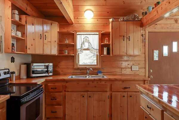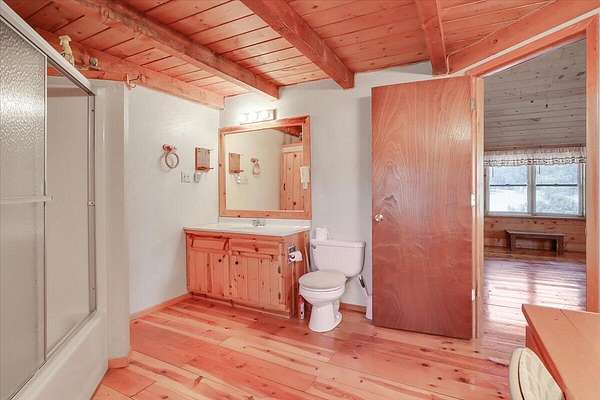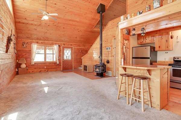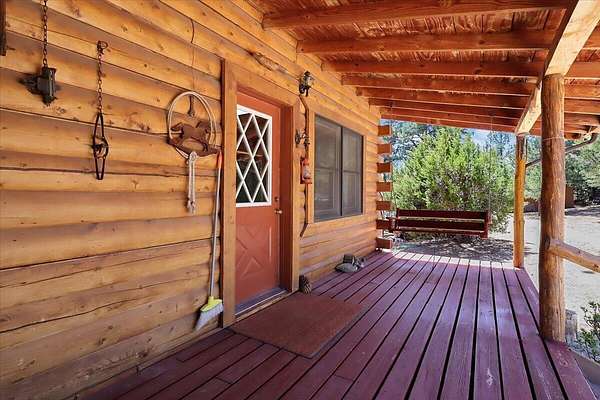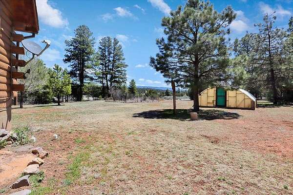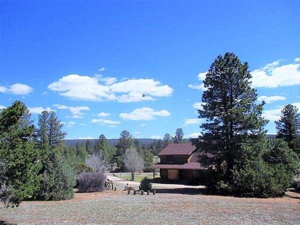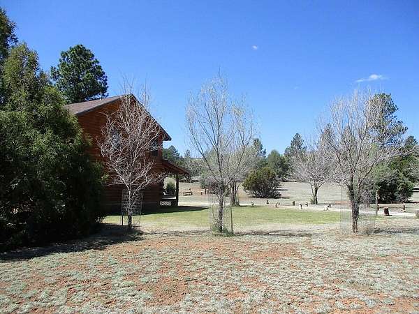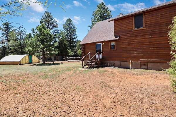 Beautiful property recently fenced around this fabulous log home for their horse on 5 gorgeous acres in the Timberlake Ranch mountain community. Spacious open loft makes for a fantastic master bedroom with private bath. There's just so much here..strong private well, double garage with carports on either end & shop space in the middle, greenhouse, horse shelter, and a cozy separate guest quarters w/kitchenette & half bath. Ramah Lake access, miles of hiking, biking, & horseback riding trails, the Ramah Falls, and endless roads & trails to explore in the Nat'l Forest. Come enjoy the unique mountain lifestyle with clean crisp fresh air, cool stary nights, friendly neighbors, local farmer's markets, community events, HOA maintained roads, and wildlife incl deer & elk often roaming thru!