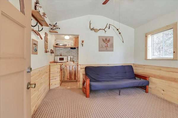 I40 to Grants exit 81, take Hwy 53 West (Ice Caves Rd.) for approx 50 miles to Timberlake Rd (sign that says 'Canyon Road'). Go right (North) for approx 6.5 miles then keep left at Y for approx 1.2 miles more to Sagebrush Rd. just past the fire station. Go right (North) for approx 1 mile to Bobcat Drive. Go left for approx 1/4 to 18 E. Bobcat Dr. on the left.