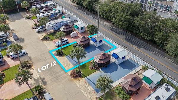 Gulf Of America -2 blocks away- the Exclusive 'Class A'/'Super C' Motorhome, 15 Lot NON-Rental Gated Community, with a Pool. One of the nicest lots on West side of the community, Lot 12 is loaded with upgrades. RV Pad was recently coated with Epoxy finish, High End Composite Decking recently installed around it, new Landscaping, new Electrical Power Pedestal Panel & added GFI protection. The Gazebo has been completely Refurbished with an upgraded Metal Roof, newly stained interior & exterior, new screening, new Outdoor Kitchen Cabinets & Granite Counters with a stainless steel Sink & built in Under Counter Fridge. The Cabana house has an A/C and Hot Water Heater that could be useful if you wanted to add plumbing. Gated Community with Palm trees, sprinkler system, Pool, Pool House with Laundry, Restrooms & Shower. $2500 Yearly HOA Fees include Ground Keeping, Irrigation, Security Gates, Community Pool, facilities, Sewer, Water & Trash. Owners Pay Electric & Cable. Pets with HOA Approval. NO 5th Wheels/trailers. Located 2 blocks from 1 of South Walton's largest Public Beaches with parking, public bathrooms and Pompano Joe's Beachside restaurant. Enjoy snorkeling at the Manmade Reef. Scenic Gulf Drive has Bike/Pedestrian Paths along the road offering beautiful Beach Views. Buyer Pays $500 Capital Contribution at Closing.