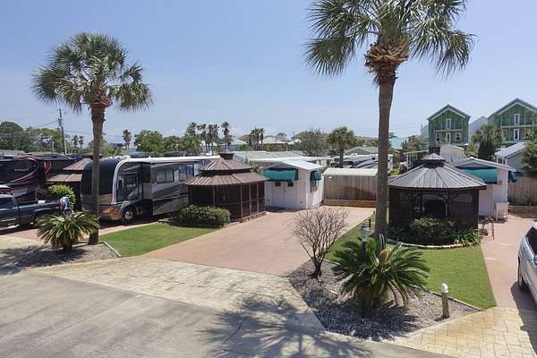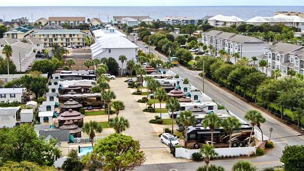 Oceanside, the Exclusive 'Class A' / 'Super C' Motorhome 15 Lot NON-Rental Gated Community, with a Pool, only 2 blocks from the Beach. Lot 3 is positioned on the East side, 2 lots from the Pool & Pool house.The furnished Gazebo & Air Conditioned Storage House both have recently installed new Metal Roofs. Screened Gazebo has a Table, Chairs, Loveseat, Sink & Cabinet. Storage house has a Refrigerator & built-in Cabinets. NON-rental Gated Community of 15 lots with Palm trees, sprinkler system, Pool, Pool House with Laundry, Restrooms & Shower. $2500 Yearly HOA Fees include Ground Keeping, Irrigation, Security Gates, Community Pool, facilities, Sewer, Water & Trash. Owners Pay Electric & Cable. Pets with HOA Approval. NO 5th Wheels/trailers. Only 2 blocks from 1 of South Walton's largest Public Beaches with parking, public bathrooms and Pompano Joe's Beachside restaurant. Enjoy snorkeling at the Manmade Reef. Scenic Gulf Drive has Bike/Pedestrian Paths along the road offering beautiful Beach Views. NON-RENTAL PARK. Buyer Pays $500 Capital Contribution at Closing.
