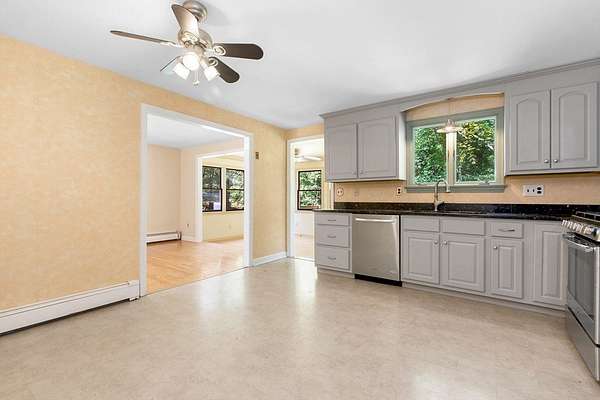 Spacious and inviting, this 4-bedroom, 2-bath split-level home offers nearly 2,000 sq. ft. of living space on over 2 acres along a peaceful country road. The bright living room with fireplace flows seamlessly into the dining area and updated kitchen, complete with granite counters and stainless appliances. A sunroom overlooks the private backyard, where a pretty stream adds to the natural charm. Located in the desirable Pentucket school system, this property offers the perfect blend of space, privacy, and potential. With some finishing touches, you can build instant sweat equity and make it truly your own. Don't miss this opportunity to create your dream home in a serene setting while still being close to all conveniences. NEW 4 BEDROOM SEPTIC TO BE INSTALLED PRIOR TO CLOSING. Hurry--this one won't last!