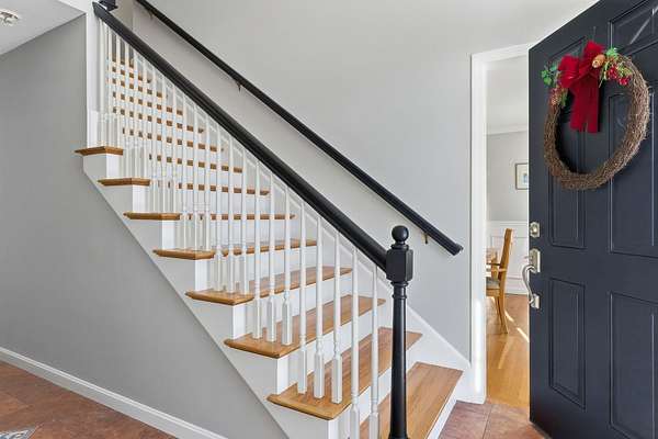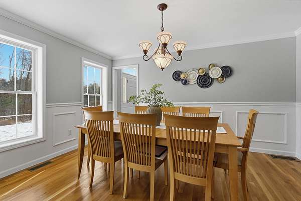 Custom built in 2001, set on 1.65 wooded private acres, this center hall Colonial offers a flexible floorplan ideal for today's lifestyles, including multi-generational living and entertaining. The light, bright two-story vaulted foyer leads to the expansive eat-in kitchen featuring granite surfaces, a center island with bar seating, and a sun-filled eat in dining area or utilize it as a sunroom. The kitchen flows to a screened porch and deck, where a hot tub was previously located. The kitchen also opens to a front-to-back fireplaced living room. There is hardwood flooring in the formal living and dining rooms. The spacious front-to-back primary bedroom offers two walk-in closets, a spa bath with separate shower. A large two-car heated garage offers direct access from the backyard garden and potential POOL area. Expansive lower level is currently used as a workshop and for storage, offering excellent potential for future finished space. Updates include all new carpeting, fresh interior paint, hardwood floors refinished and power-washed exterior. Mechanicals: automatic generator, irrigation system, a pre-inspected pipe and stone septic system, approx. two-year-old central air condenser, well pump/well pressure tank, hot water tank and Carrier heating/cooling system (FHA); converted to propane ($335 per mth. Plan). Terrific location and convenient to all amenities. Award-winning Bedford schools. VISit Today! DELAYED showings until Open House 12/20 12-2.