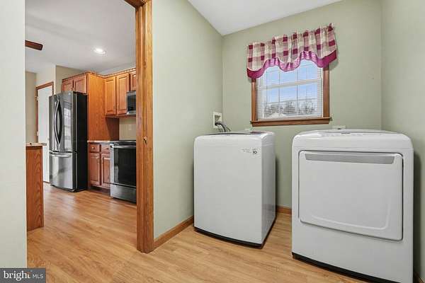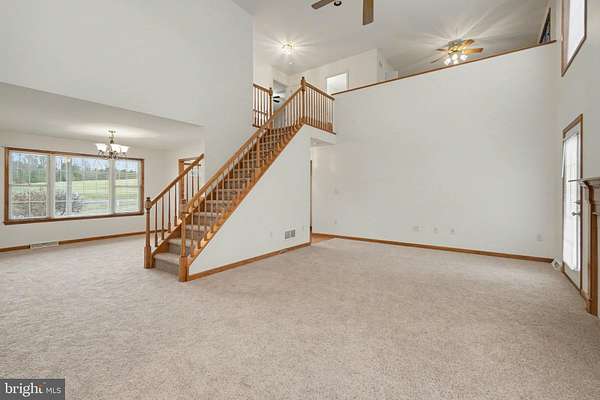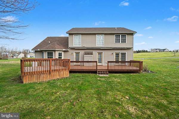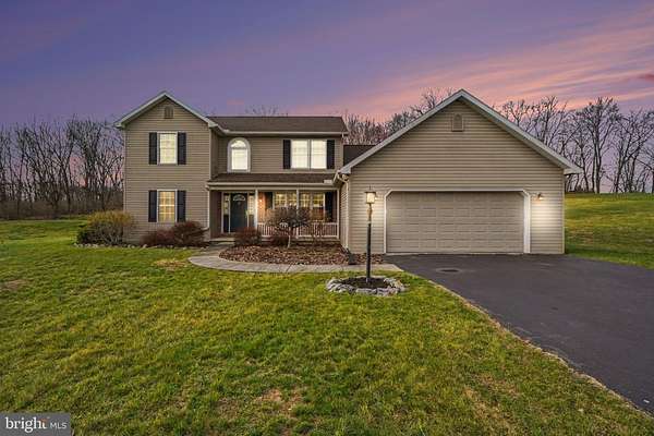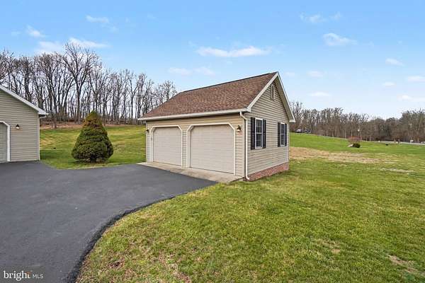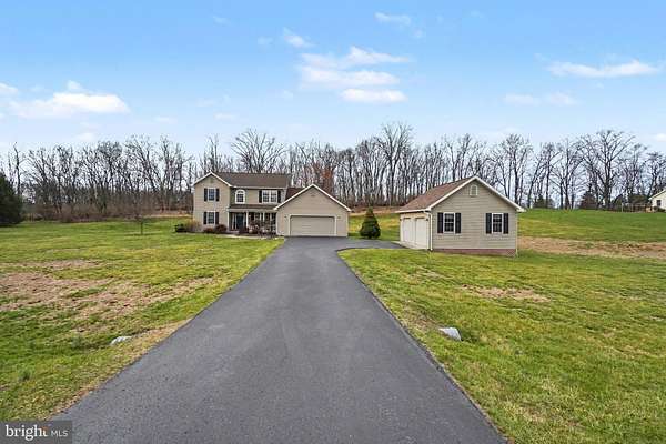 Welcome to this beautifully appointed home set on a spacious 2-acre lot, offering the perfect blend of comfort, style, and functionality. A stunning hardwood foyer welcomes you into a bright, airy living space featuring cathedral ceilings and a cozy fireplace. The kitchen is ideal for both everyday living and entertaining, complete with granite countertops and a convenient breakfast bar. The main level features a desirable first-floor owner's suite with direct access to the expansive deck-perfect for morning coffee or evening relaxation-as well as first-floor laundry for added convenience. Upstairs, a versatile loft area provides additional living space, ideal for a home office, reading nook, or guest retreat. The full unfinished basement offers endless potential for future expansion or storage. Car enthusiasts and hobbyists will appreciate the rare combination of a 2-car attached garage plus a separate 2-car detached garage. Step outside to enjoy the spacious deck with an awning and a peaceful, tree-lined backdrop-perfect for relaxing or entertaining. Recent updates include a new roof (2022), new carpet, and new composite decking. All appliances included, making this home truly move-in ready.