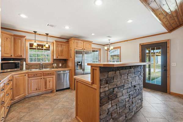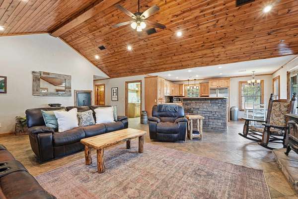Looking for privacy, this is it! Welcome to 18 Kenwood Cove, a secluded 9.75 acre property with no restrictions. Step inside the 3 bed, 2 bath home with an open layout, vaulted ceiling, wood burning fireplace, plus covered front and back porches. Relax in the hot tub and soak in the peaceful views. Property features a serene pond (seasonal), a 40x40 shop with a fully equipped 20x40 1 bedroom, 1 bathroom apartment and tornado shelter, greenhouse, chicken coop and a pond. The shop apartment adds flexibility for guests, rental income, workspace or a fun gathering spot for family and friends. Additional 10x60 lean-to behind shop. Opportunities like this do not come often, schedule your showing today and take the next steps towards making this private retreat your next home. Agents see remarks.