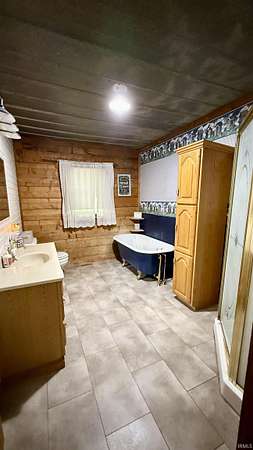 Welcome to this inviting 4 bedroom log home tucked away on a private road just off hwy 37 in Springville. Set in a peaceful wooded setting, this home offers a perfect blend of country charm and convenience. Relax on the large covered deck on the main level - ideal for enjoying quiet mornings or evening gatherings. The metal roof adds durability and character, while the cozy wood burning stove brings warmth and comfort to the living space. With generous room sizes and classic log cabin details throughout, this home is ready for your personal touches. A rare opportunity for those seeking space, privacy and charm, all within easy reach to both Bloomington and Bedford.