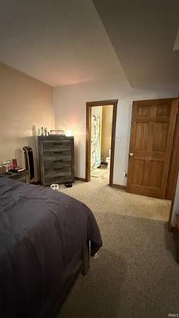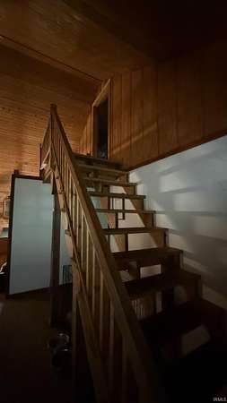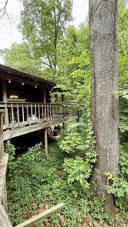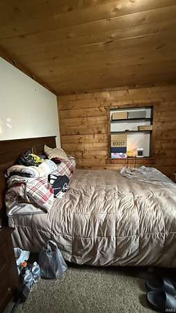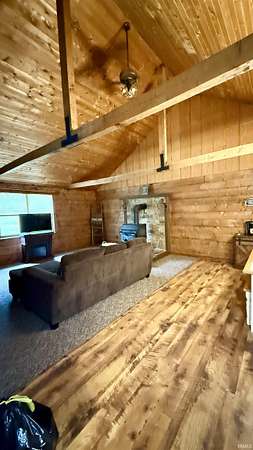Spacious 4 bedroom, 2 bath log home, conveniently located just 2 miles from hwy 37. This home offers comfort and privacy. The open living area features a wood burning stove, perfect for cozy evenings. Step outside to the covered deck, overlooking the partially wooded lot. This is ideal for relaxing and entertaining. This home is situated on a private road, which provides a peaceful setting due to no traffic. The metal roof adds durability and character. With generous room sizes and classic log cabin details throughout, this home is ready for your personal touches. A rare opportunity for those seeking space, privacy and charm, all within easy reach to both Bloomington and Bedford.