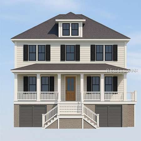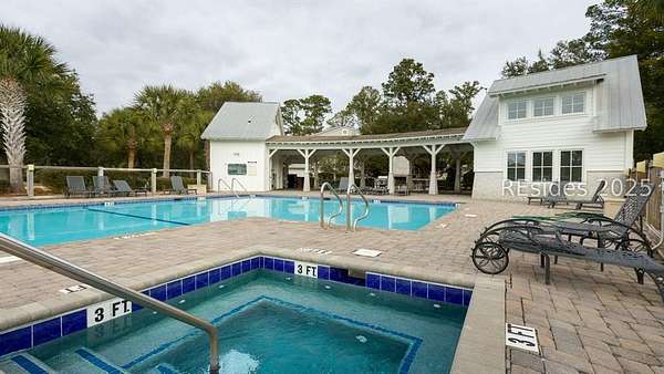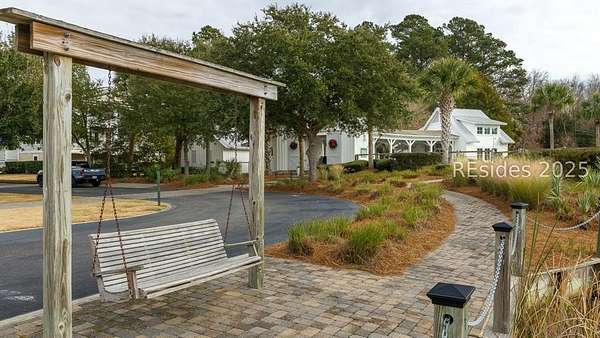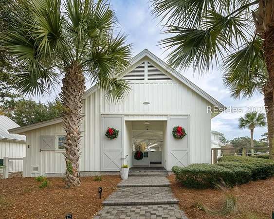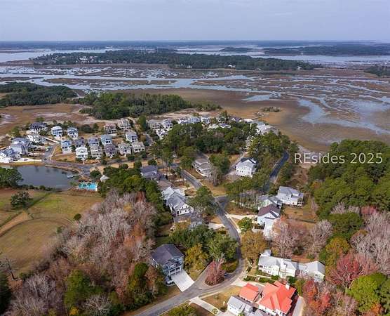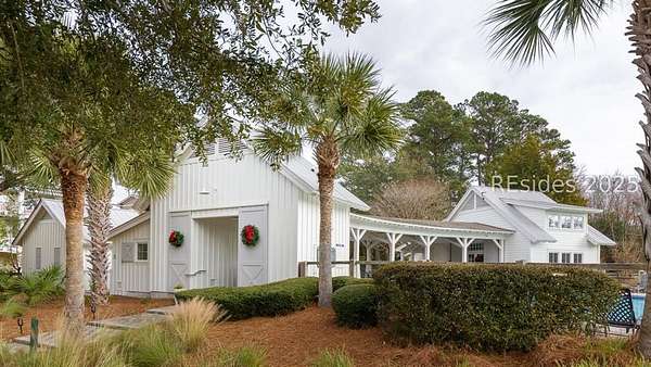 This .233 acre building lot in The Paddocks private community on Jonesville Road on Hilton Head Island, South Carolina, presents the opportunity to construct your dream custom home. Enjoy the privacy of a gated entry, along with neighborhood recreational amenities such as a community pool, clubhouse and a stunning tidal marsh walking path with views extending to Calibogue Sound and Jarvis Creek. A spectacular Lowcountry style home has been designed perfectly to fit the space, complete with approximately 3000 square feet of conditioned space, 4 bedrooms, 3 1/2 bathrooms, covered porches, and drive-under garage.