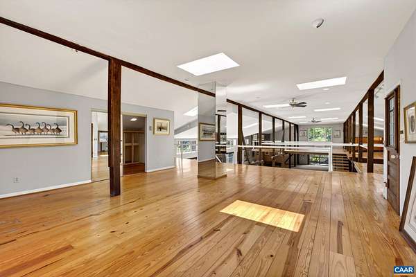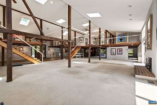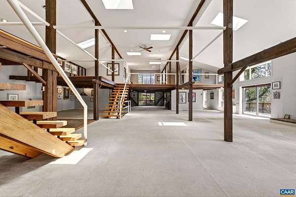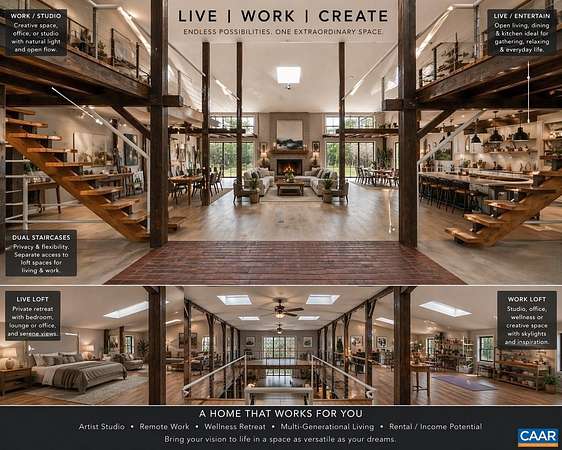 SHENANDOAH VALLEY – Creative artist compound on the South River. Formerly home to noted American artist P. Buckley Moss, this distinctive property offers a rare opportunity to reimagine a truly unique live/work setting. Situated on approximately 13.8 acres, including a separate 5-acre riverfront parcel, the offering includes a 5,000+ sq ft multi-use structure originally constructed as an apple barn and later adapted for residential and studio use. The main structure features expansive open areas, soaring ceilings, and two lofts, along with a kitchen, dining area, multiple baths, and an unfinished walk-out basement, providing exceptional flexibility for creative or residential use. A separate 3-bedroom residence offers additional options for living, rental income, or guest accommodations. Property presents a renovation opportunity and is well suited for buyers seeking space, privacy, and a one-of-a-kind setting. Conveniently located just minutes to downtown Waynesboro and Staunton & its vibrant creative community. Ideal for a barndominium conversion, yoga or wellness retreat, or holistic home-based business. More than a home, this property is a blank canvas and a foundation for something extraordinary.