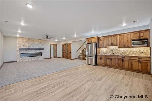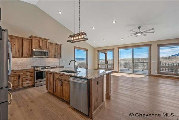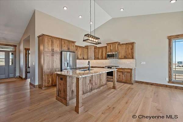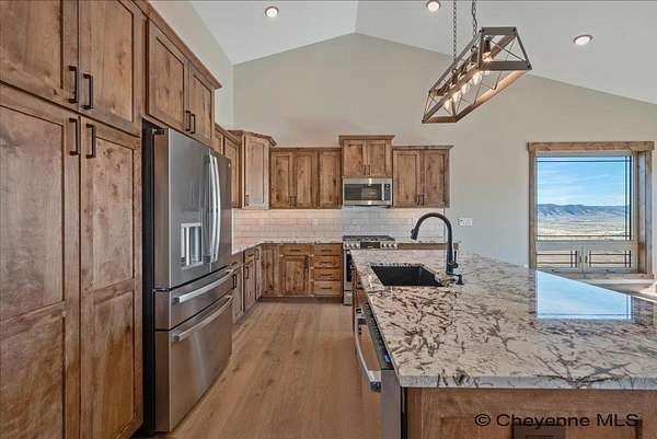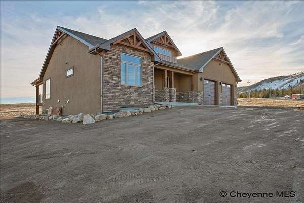 Looking for a luxury home in Centennial, Wyoming nestled at the entrance to Medicine Bow National Forest? This Brand-New Custom-built home by the popular and talented custom home builder Dan Gregg, is finished and ready to move into. The features of this stunning home will not disappoint, from the maintenance free stucco and stone exterior to the exquisite finishes inside that include a finished basement. The kitchen has premium granite counters, tile backsplash, quality cabinets, and appliances. There are two gorgeous fireplaces, large bedrooms with walk in closets, 3 gorgeous bathrooms also adorned with quality granite and tile, there are ceiling fans thru-out the home, a wonderful wet bar with extended granite counter space and plenty of cabinets in the basement, air conditioning, and a heated oversized 3-car garage with plenty of space for outdoor recreational equipment. For those that have not yet become acquainted with the growing interest in the area, the quaint mountain town of Centennial is the gateway to Wyoming's beautiful Snowy Range Mountains in Medicine Bow National Forest. There are year-round adventures to be had with fishing, hiking, camping, snowmobiling (including groomed trails), ATV riding and photography. The winter months offer the affordable and family-friendly Snowy Range Ski Area. Sled heads will enjoy miles of snowmobile trails featuring fresh powder and stunning vistas within the Snowy Range Mountains. At the end of an adventuresome day, enjoy sharing stories with family and friends over a hot meal while taking in the scenic views from inside this warm and impressive home. The elements of this captivating home will also bring pleasure to those that just need a change of pace and want to relax with a good book.