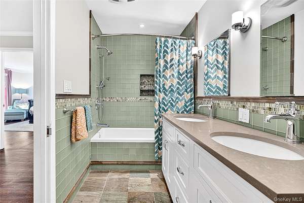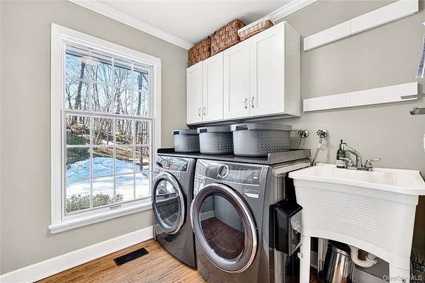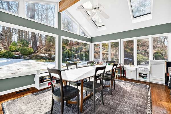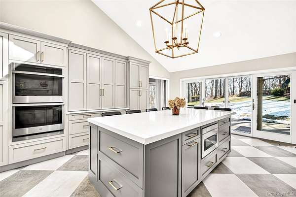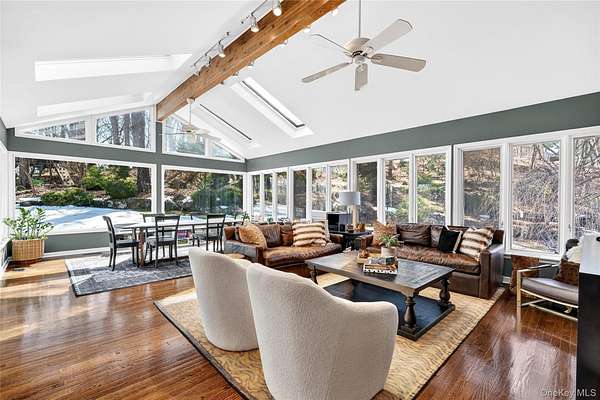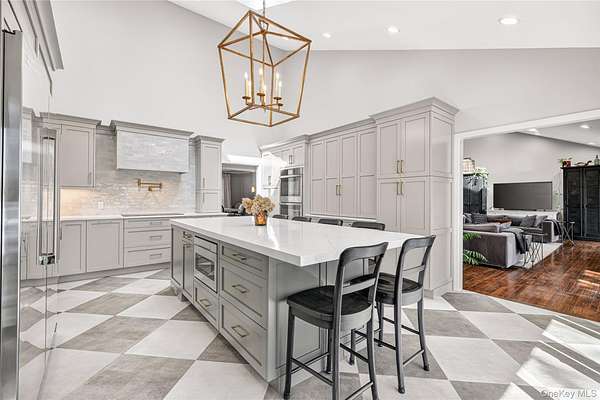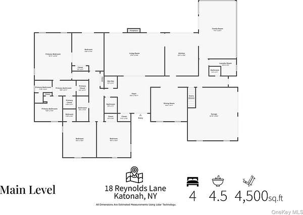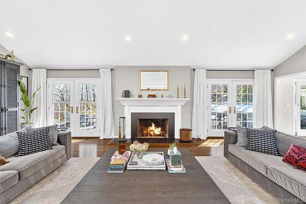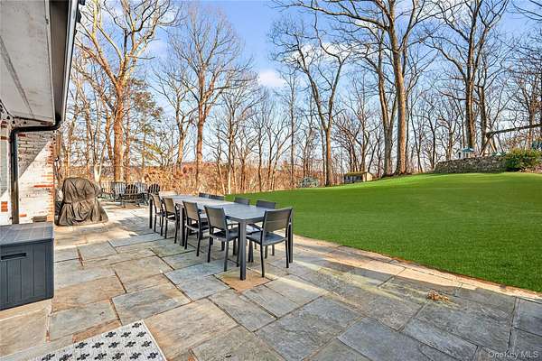 Move right into this luxurious, 4500 square foot ranch on 4 acres of serene land on a highly sought after cul-de-sac in Katonah. You'll love this home from the moment you enter the welcoming foyer with built-in wet bar leading to the living room with a wood burning fireplace and two French doors to the stone patio. The formal dining room features custom millwork. This meticulously cared for home was recently renovated with a beautiful gourmet, eat-in kitchen with an island, all new appliances, and custom details throughout all cabinets. The primary suite has two walk-in closets and two full bathrooms. The other three bedrooms are very spacious with large closets, and one of the rooms has French doors out to a patio. Laundry room on the first floor has a new washer (2025) and dryer (2025), and it's situated close to the side entrance and two-car garage. Hardwood floors throughout. The walkout basement not only has ample storage but also includes an enormous recreational, entertaining and gym area. The professionally landscaped grounds have lawn sprinklers with a premium irrigation panel installed in 2022 and invisible dog fence. Newer three zone heat and AC (2024). Other recent upgrades include a well pump (2025), gutters (2024) and generator with a buried propane tank. This very desirable location is peaceful yet close to the Katonah Train Station, restaurants, and shopping. This is truly a special home.