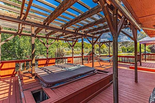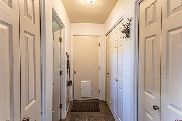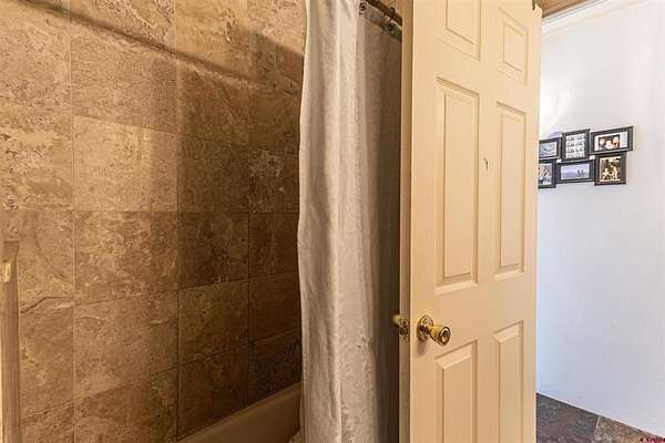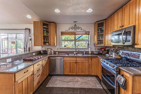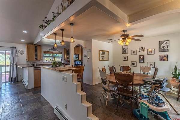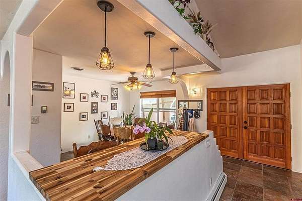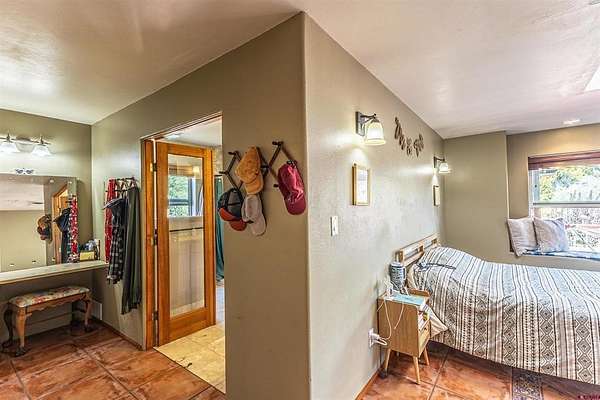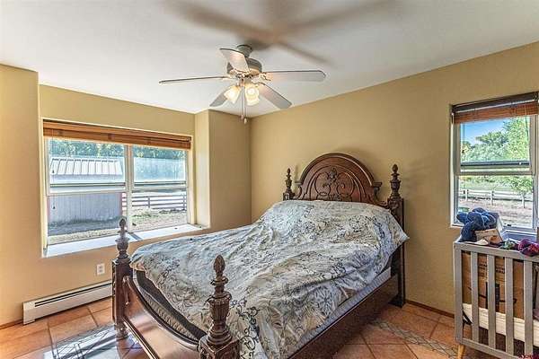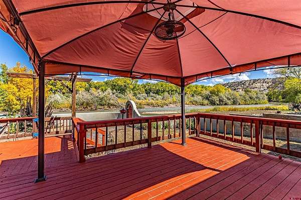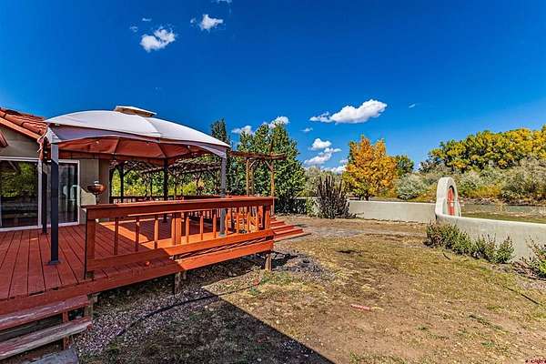 Allen Elmore, eXp Realty, LLC, C: 505-686-3831, Allen@AE.Properties, www.crenmls.com: ''Rio de las Animas'' Rare opportunity to own irrigated farmland & a modern southwest-style home located on 2ac directly on the beautiful Animas River. Situated at the end of a private drive surrounded by quiet farms, this property offers true peace & privacy while staying under 30min to Durango, CO & less than 10min to Aztec, NM. Built in 2001, the 3-bedroom, 2-bath stucco home showcases Santa Fe character w/ vaulted ceilings, skylights, & custom tile floors throughout. The open floor plan features a bright living area w/ a tiled gas log fireplace, formal dining space, & dual sliding glass doors leading to a spacious 618 sf deck overlooking the river--perfect for relaxing or entertaining. The updated kitchen offers granite counters, custom cabinets, multiple pantries, breakfast bar, & stainless appliances including a 5-burner gas stove w/ double oven. The primary suite is a peaceful retreat w/ deck access, river views & sounds, dual oversized closets, & an en suite bath featuring travertine tile, dual sinks, jetted soaking tub, & tiled shower. Two additional bedrooms share a beautiful bath w/ travertine counters & custom tile. A large office adds flexibility for work or hobbies. The 609sf finished 2-car garage includes a workshop area & attic access. Enjoy the 618sf freshly painted deck w/ dual shaded areas, courtyard w/ fruit trees, roses, & sprinklers fed by a private well. The property also includes a 20x40 3-sided pole barn or 4-car portico & a wooden shed. There are 5.72acre-feet of irrigation rights w/ pumps & sprinkler zones needing maintenance, plus a 1.22ac fenced pasture ideal for small-scale farming or livestock. Efficient radiant floor heating & a modern evaporative cooler keep the home comfortable year-round. The well water system has all new equipment & filtration, & the tile roof is built to last. A rare blend of privacy, functionality, & refined southwestern style--your Animas River retreat awaits.