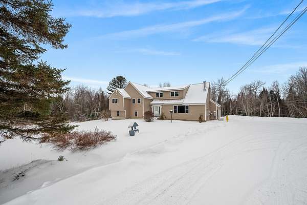 This expansive six-bedroom, four-bath residence sits on 10.39 acres with stream frontage along East Branch Simms Stream, offering an exceptional opportunity for those seeking space and natural beauty. Located in Northern New Hampshire's scenic Great North Woods Region, the property is conveniently close to the Connecticut River and well positioned to enjoy the area's diverse four-season recreational activities. The main living level features a modern kitchen with appliances, a generous living room with fireplace, a dining area, and access to a deck for warm-weather enjoyment. All bedrooms and bathrooms are situated on the upper floors. The home benefits from forced hot water oil heating and two mini-split systems for summer cooling. Additional amenities include a backup generator and integrated fire alarm and sprinkler systems.