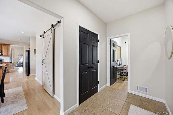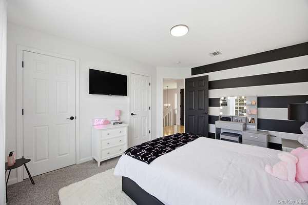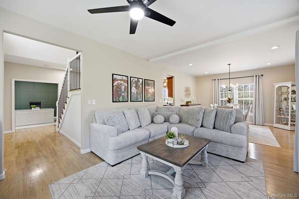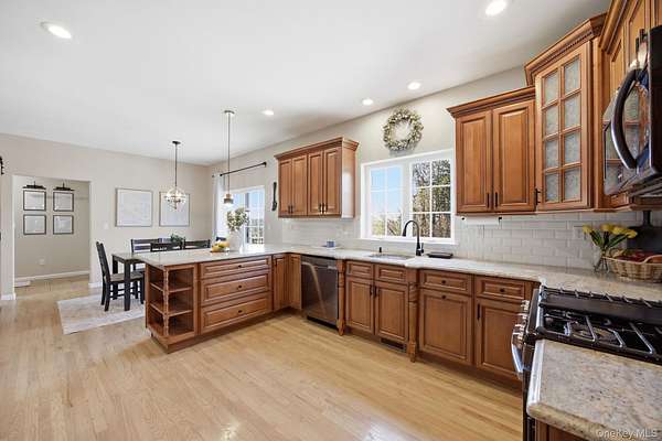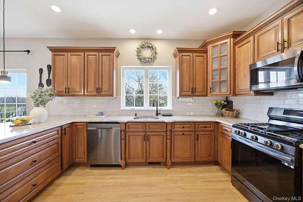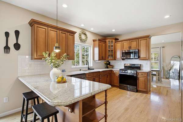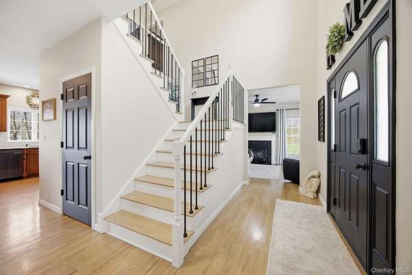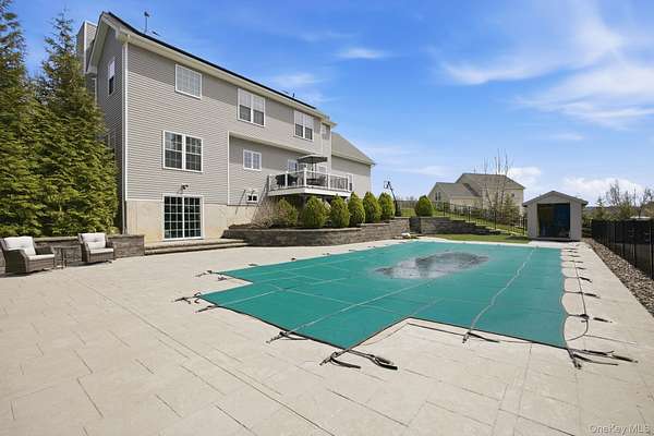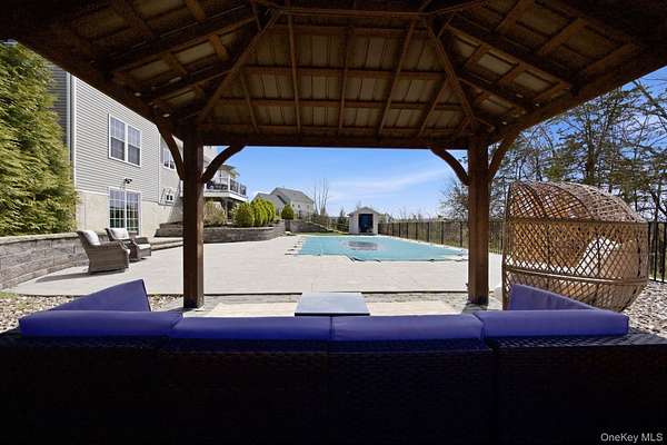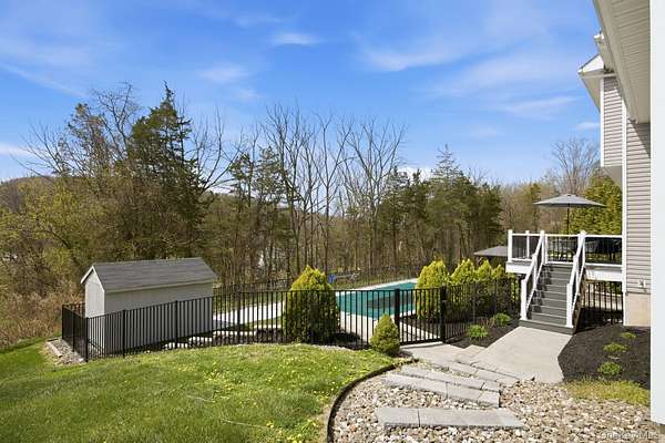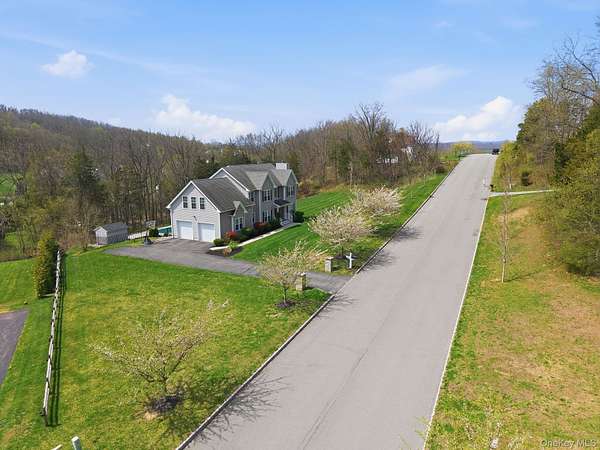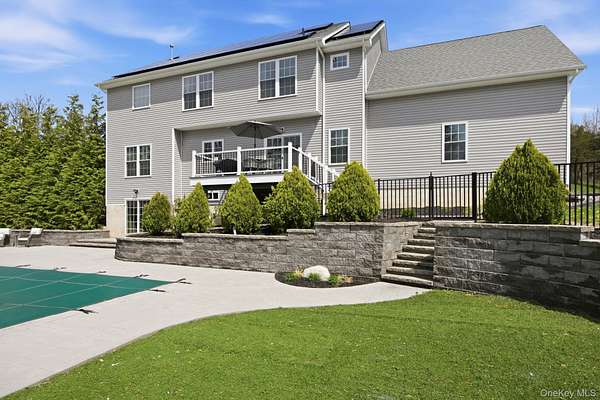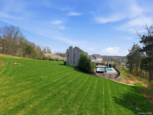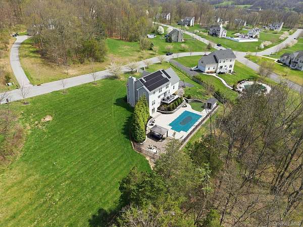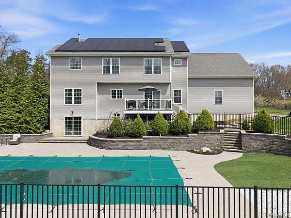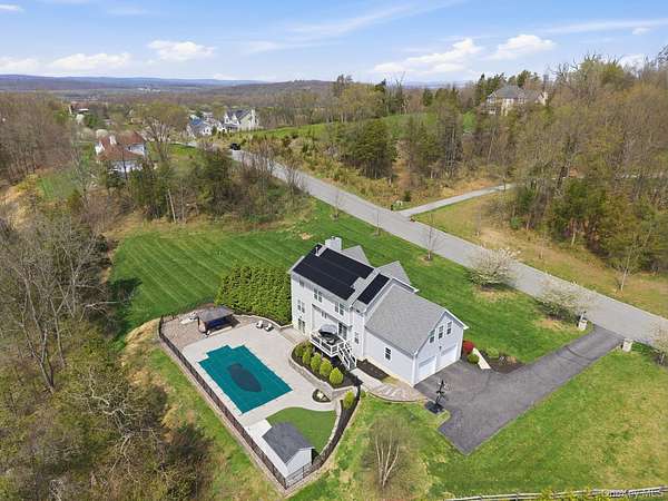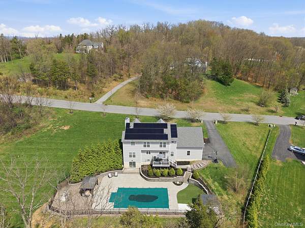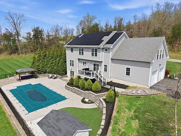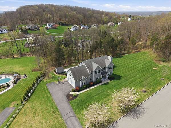 Welcome to 18 Valley View Road in Goshen, New York - a meticulously maintained 4-bedroom home set on 1.6 private acres in the highly desirable Remington Ridge Estates and Goshen School District. From the moment you arrive, you'll appreciate the pride of ownership and exceptional curb appeal this property offers. Step inside to a dramatic two-story foyer that creates an impressive first impression and opens into a bright, spacious floor plan designed for both everyday living and entertaining. The main level features beautiful hardwood floors, a private study, living room, dining room and a stunning kitchen with rich hardwood cabinetry, stone countertops, and a walk-in pantry. Large windows throughout the home fill each room with natural light and provide peaceful views of the surrounding property. Upstairs, the spacious primary suite offers a true retreat with a walk-in closet and a en-suite bath complete with a soaking tub. Three additional bedrooms provide plenty of room for guests, or additional workspace. A large second-floor bonus room offers endless possibilities for a media room, playroom, gym, or additional living space. An upstairs laundry room adds convenience and functionality to everyday living. Step outside and discover your own private backyard oasis. The stunning 18' x 36' in-ground pool is surrounded by a large stamped concrete patio, creating an incredible outdoor living and entertaining space. A composite deck overlooks the backyard, making it the perfect place to relax or host guests. Whether enjoying quiet evenings outside or entertaining all summer long, this outdoor setting is truly one of the home's standout features. Additional highlights include a rooftop solar system positioned out of view from the front of the home for improved energy efficiency without compromising curb appeal, generous storage throughout, and beautifully maintained grounds. Combining elegance, comfort, privacy, and resort-style outdoor living, 18 Valley View Road is a rare opportunity to own a move-in-ready home in one of Orange County's most sought-after communities.