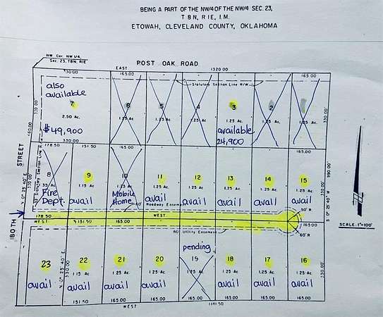 From S. Dobbs Rd and Post Oak Rd in Noble, go south on Dobbs and South past the Fire Station then turn East. All the lots will be numbered.