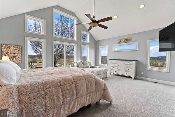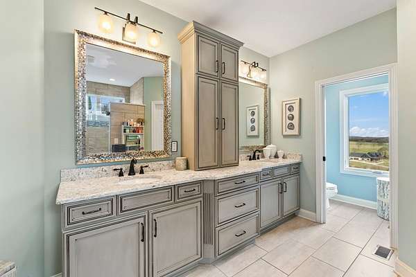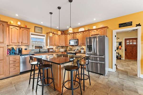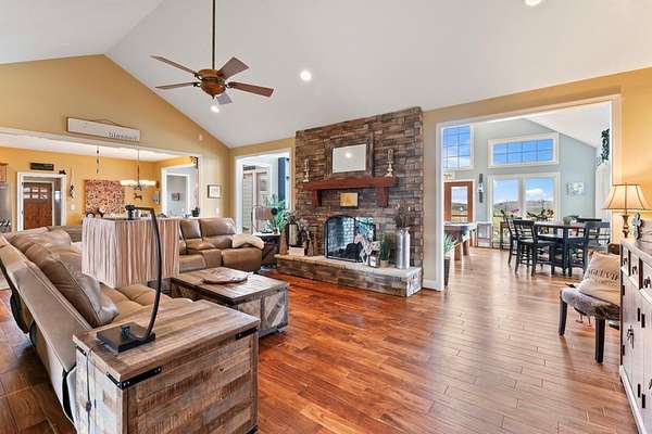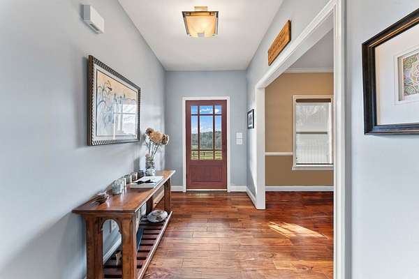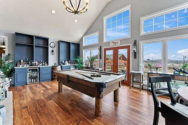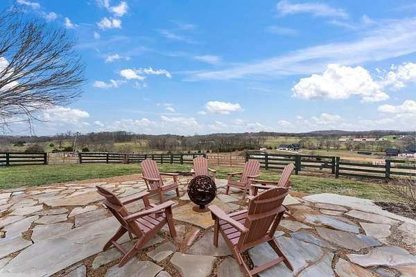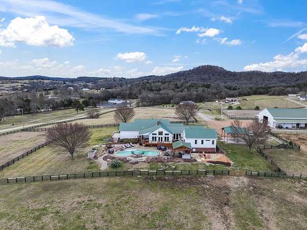 Premier gentleman's farm set on 24+ acres in Eagleville's scenic countryside, just ~30 miles south of Nashville. This equestrian retreat blends rural elegance with modern comfort. The 4-bedroom, 3.5-bath main home offers over 3,500 sq. ft., hardwood floors, and four porches showcasing sweeping valley views. A stunning double-sided stone fireplace anchors the Great Room and opens to the Billiard Room with built-ins. The upgraded Primary Suite balances rustic charm with refined finishes. A walk-out basement with 8' ceilings provides pool access and future potential for a wine cellar, tasting room, or studio. Outdoor amenities include a covered Cowboy Kitchen, saltwater pool, stone waterfall, patio, iron globe fire feature, and split-rail fencing. An impressive 8-stall barn with caretaker's suite and riding ring completes the estate, surrounded by rolling pastures. Private yet convenient to town, this property is ideal for horses, hobby farming, or peaceful country living.