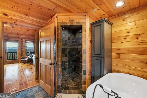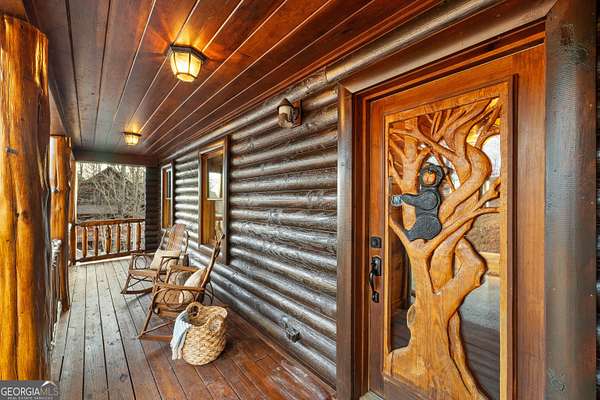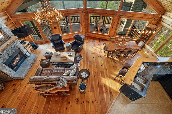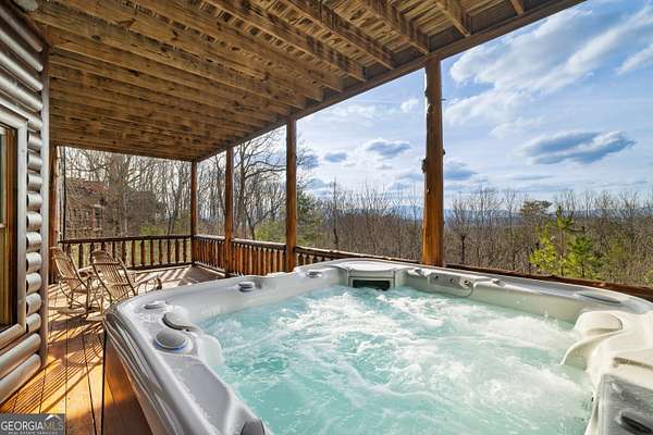 Perched high above the rolling Blue Ridge Mountains, this property offers an extraordinary mountain experience where luxury meets untamed natural beauty. From this rare vantage point, layered ridgelines stretch endlessly across Georgia, Tennessee, and North Carolina, creating a breathtaking panoramic backdrop that feels almost cinematic. Inside, walls of glass dissolve the boundary between indoors and out, allowing the ever-changing mountain canvas to become part of daily living. Golden sunrises spill across the peaks each morning, while evenings bring painted skies and a stillness only found at elevation. The living spaces are designed for refined comfort - intimate gatherings around the fireplace, elegant dinners flowing seamlessly from the kitchen, and effortless entertaining that extends onto expansive outdoor living areas. The outdoor fireplace and hot tub create a private mountainside retreat, where you can unwind beneath starlit skies with uninterrupted long-range views in every direction. The primary suite is a sanctuary of calm, offering a spa-like bath and serene atmosphere that mirrors the surrounding landscape. The terrace level invites relaxed sophistication with space for games, conversation, and memorable evenings with guests. Currently operating as "Honey Dipper Lodge," a successful short-term rental, the property is being offered turn-key furnished, allowing the next owner to step directly into a proven investment opportunity or immediately begin enjoying the home without the need for additional setup. This is more than a cabin - it is a statement property, offering an unparalleled tri-state mountain panorama and a lifestyle defined by tranquility, beauty, and distinction.