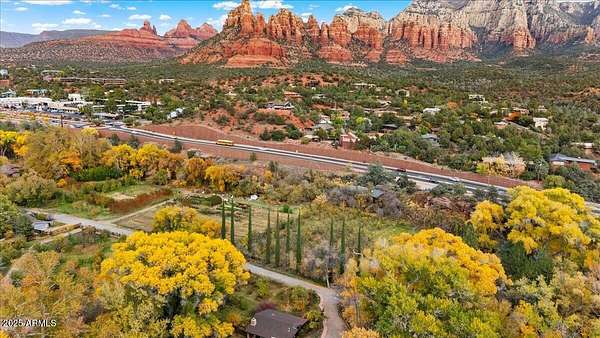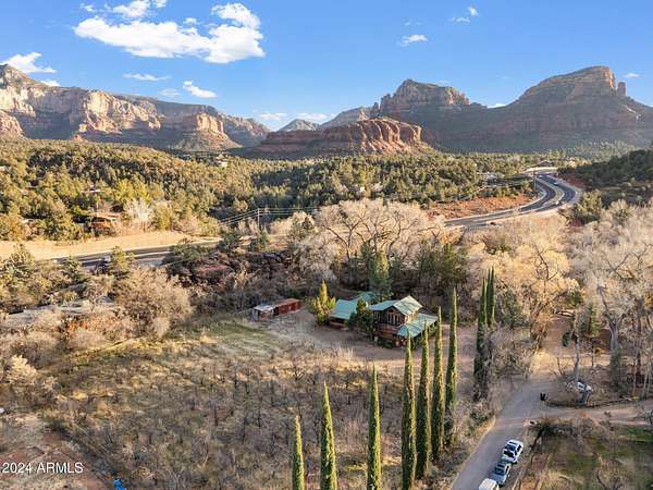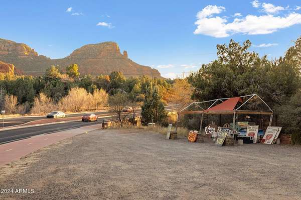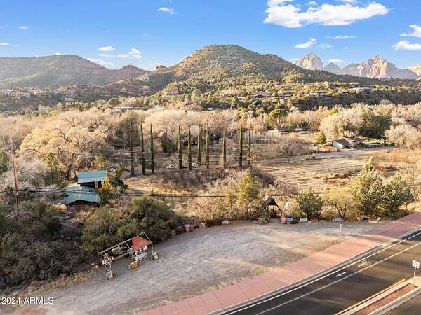 Seize this rare opportunity today at a new and improved price. Discover the perfect blend of tranquility and opportunity on this 2.32-acre property. Nestled along Highway 179, this unique parcel features not only a 2915 SF 3/2 Main Home, but also a 300-tree apple orchard and Operational Business license, Oak Creek Apple, LLC for 'Farm stand - like business' may convey with propert, offering space for 17 parking spots. Just a step down from the highway, you'll find a charming 1400 SF building that once served as a country store, ready for your vision. This isn't just a home; it's a chance to live and work harmoniously in one location. Embrace the farm-to-table lifestyle surrounded by breathtaking red rock views, all while being just minutes from town amenities. You can have it all!