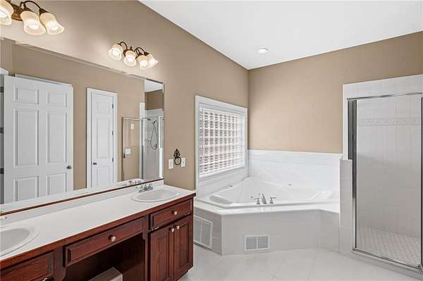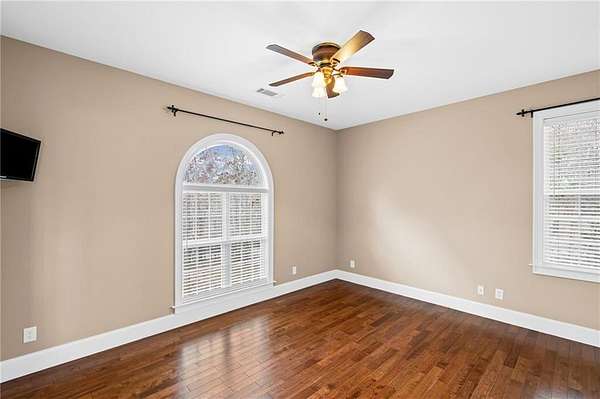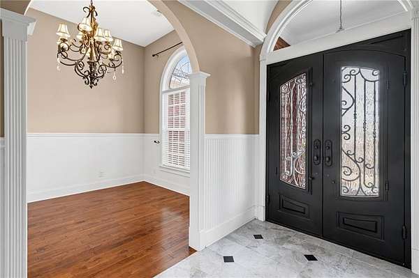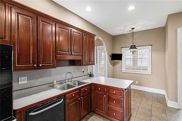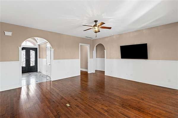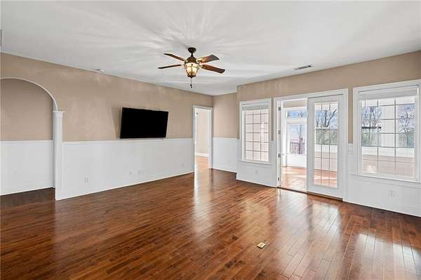 Welcome to this beautifully crafted, all-brick ranch home that blends classic architecture with warm, inviting spaces. From the moment you arrive, the grand arched entryway, double wrought-iron doors, and symmetrical front facade make a bold and elegant first impression. Step inside to a sun-filled foyer framed by soaring arches, columns, and detailed trim work that opens into an airy, open-concept layout. The home showcases rich hardwood floors, a spacious living area with French doors, and thoughtfully designed spaces perfect for both daily comfort and upscale entertaining. The kitchen features warm wood cabinetry, generous counter space, and direct access to the formal dining room, large enough to comfortably seat up to 12 guests under its stunning chandelier and arched picture window. A dedicated laundry room with custom built-ins adds convenience and organization to your daily routine. Retreat to the luxurious primary suite, complete with a spacious double-vanity bath, walk-in shower, and a jetted corner tub set beneath a glass-block window, your own private spa escape. Each of the 3 other bedrooms offer their own private full bath. Outside, enjoy a private deck overlooking mature trees with beautiful Mountain View, a 2-car garage with ample driveway space for additional parking or projects. The property also has a 12 x 24 storage building. The fully finished basement also offer 10' ceilings, hardwood floors, a large family room area, 2 other multi-use rooms, a spacious theater room (theater room is furnished, including equipment). There is also a space which could easily be converted to a small kitchenette/bar area. A lower level 2 car garage with workshop is climate controlled with a sink and full wall storage cabinets. This home blends character, functionality, and future potential. It's pristine, spacious, and ready for your personal touch.