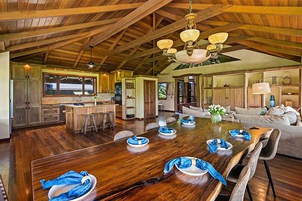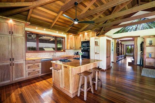 Located on Maui's North Shore and only a 30 min drive from the airport, this property offers a private oasis, irreplaceable natural resources, and panoramic ocean/coastline/waterfall views! This is a perfect generational estate, wellness retreat, or visionary compound! Come tour this double fenced private estate where you will walk through hand crafted 24 foot custom gates to find 6 permitted structures that blend Japanese, Hawaiian and Balinese architectural styles, a yoga studio, an office/garage, an infrared sauna and a custom loft. Take the stone walking path encircling the estate to explore the rainbow eucalyptus forest, paperbark tree grove, and the various trees (cherry, papaya, etc). With a wrap around driveway with parking for 20+ cars, this property is perfect for entertaining family and friends! This property has a 280 foot private well with county water rights, volcanic soil ideal for agriculture, and owned solar with commercial grade infrastructure making it a self-sustainable getaway! Seller has invested millions into the property for custom upgrades/improvements. Do not miss out on this unique property!