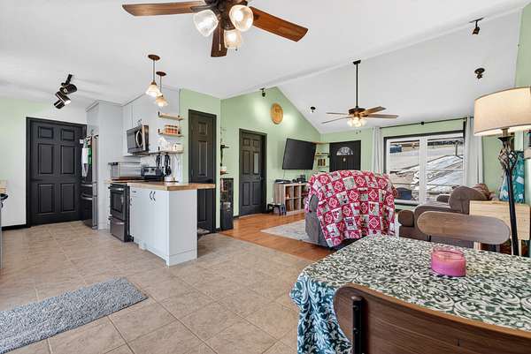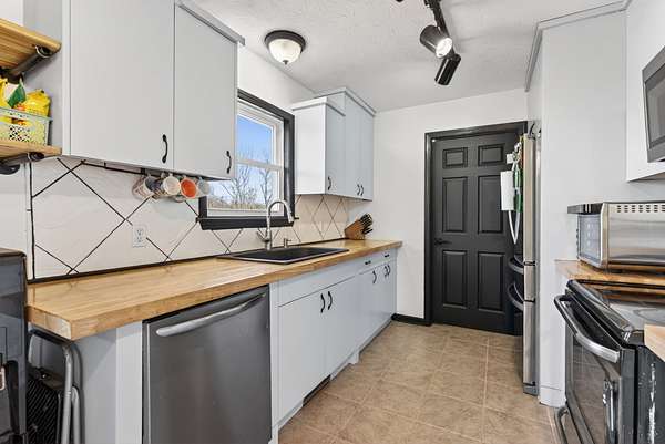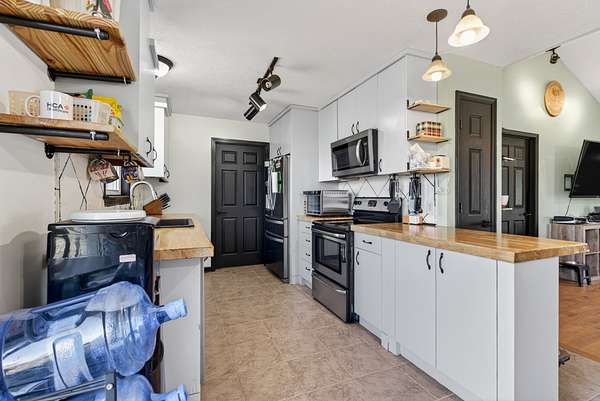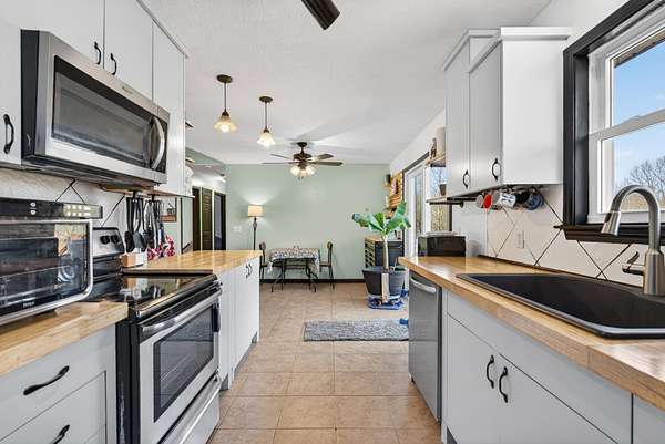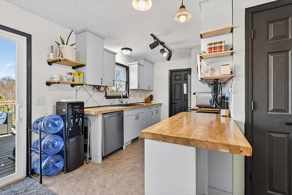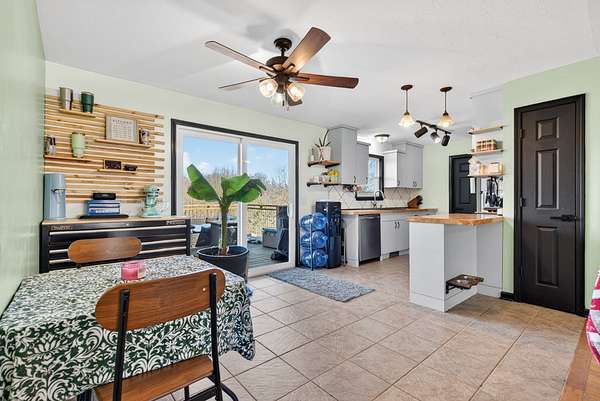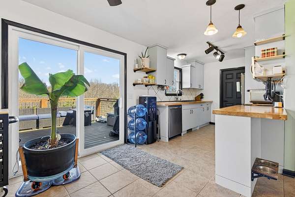 The home features a mostly finished full basement complete with a workshop and two separate doors leading to the backyard. The main-level deck includes steps down to a large fenced portion of the yard, providing excellent space for pets, play, or entertaining. Inside, the kitchen has updated countertops and all stainless steel appliances, with the refrigerator remaining. The washer and dryer will also remain and has a brand new dishwasher. The pool table in the basement conveys with the property. Recent improvements include all new windows, new sliding glass doors, new HVAC system, new attic insulation, new flooring in the bedrooms (no carpet), and a new vanity in the primary bathroom. The home also includes a sprinkler system for added convenience. If you're looking for acreage, privacy, and a move-in ready home with major upgrades already completed, this property delivers both comfort and flexibility.