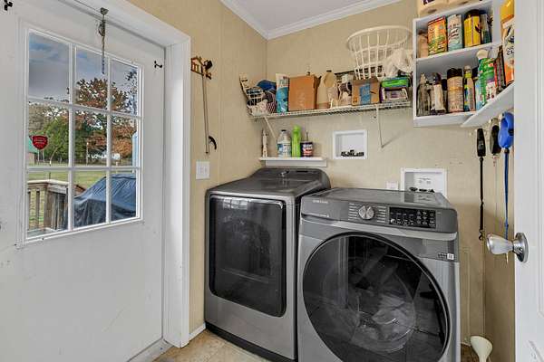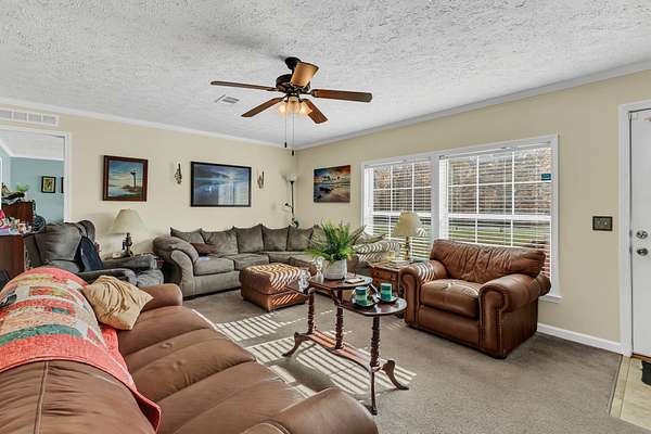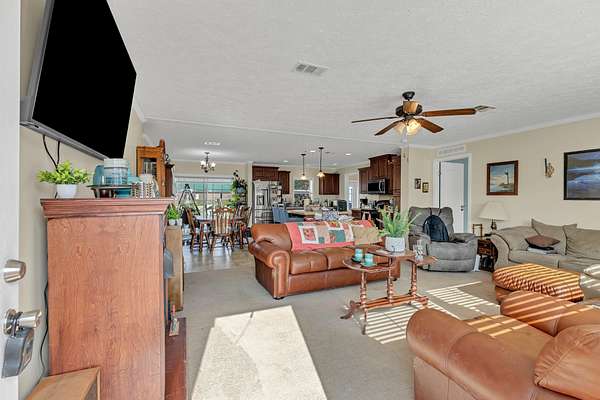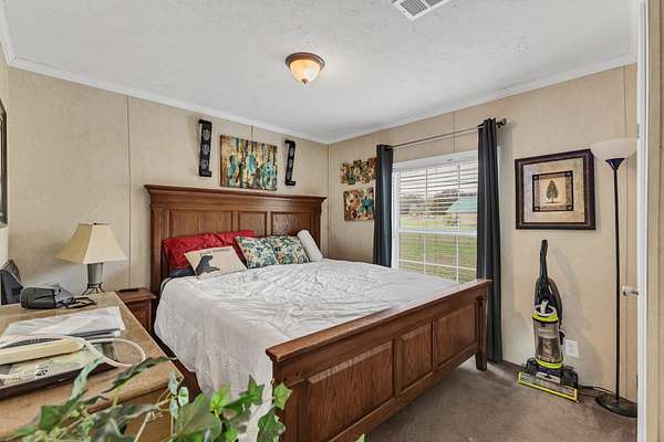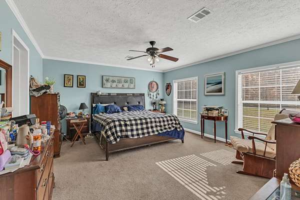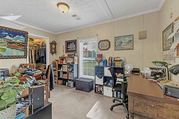 Nice home on a beautiful 2.97 acre corner lot with potential for 4 bedrooms (2 bedrooms with walk-in closets + 2 offices with closets). Land is cleared, level and usable with road frontage on Duke Road and CCC Road. Fenced back yard. This home offers an inviting open floor plan. The kitchen features a spacious island with bar stool seating and includes a refrigerator, dishwasher and stove/oven. The large master bedroom includes a walk-in closet, while the master bath is designed for comfort and convenience with a garden tub, double vanities, linen cabinet and a private room with the toilet and shower. 2 storage buildings. Xfinity internet is available