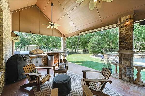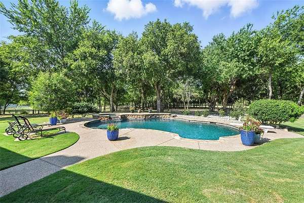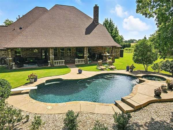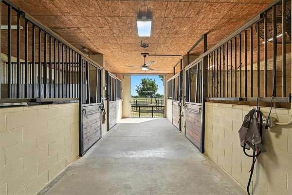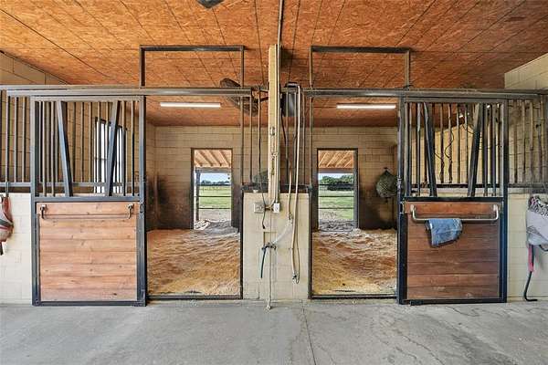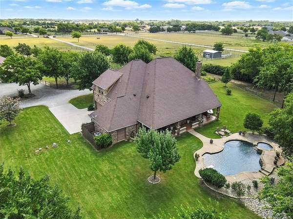 Step outside to your own backyard oasis with a saltwater pool, spa, diving board, and outdoor kitchen with grill and bar seating that's perfect for Texas evenings. Equestrian and livestock lovers will be thrilled with the 36x56 block barn, offering four horse stalls, two livestock stalls, wash rack with Hot & Cold water, full tack room with bathroom, fly spray system, laundry, and full RV hookups with septic. The property also includes a chicken coop, 10x15 concrete floor shed, three fenced pastures, and a lean to with water and electricity. Located in highly sought after Northwest ISD, just 35 minutes to Fort Worth and DFW Airport, this property offers unbeatable convenience with rural charm. You're also minutes from premier equine facilities including Outlaw Equine (11 miles), 4S Equine Hospital (5 miles), and multiple training barns in nearby Justin. Whether you're looking to relax by the pool, host unforgettable gatherings, or enjoy horseback riding in the neighborhood, this rare property delivers it all.