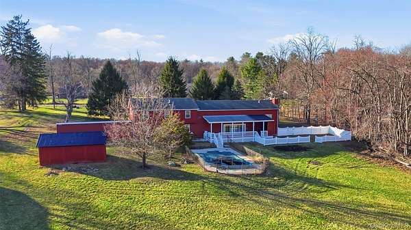 TOWN OF SHAWANGUNK - RENOVATED MODERN FARMHOUSE WITH INGROUND POOL - LARGE 20x40 SHED & CHICKEN COOP - This charming, turnkey, beautifully renovated home, dating back to the 1800's offers many things that the typical new construction house may not. Set on just over 2 acres in the Pine Bush school district with this exceptional property offers nearly 3,000 square feet of living space, featuring 3 bedrooms, 3 full bathrooms, and multiple bonus rooms to suit your lifestyle. A flexible layout presents the potential for an in-law suite setup or private home office with separate entrance (with proper permitting). Step inside to a bright, open-concept main level with soaring ceilings and a stunning 16-foot glass slider that seamlessly connects indoor and outdoor living. The expansive covered back porch is an entertainer's dream, complete with a custom bar crafted from 100-year-old reclaimed wood sourced from the property-ready for your flat screen TV and barstools! Overlooking the inground pool and level backyard, this outdoor space is ideal for barbecues, parties, ball games, or riding ATV's. An additional fenced-in area is perfect for pets to play. Inside, the stunning all-white chef's kitchen features quartz countertops, stainless steel appliances, and a generous 9-foot island with ample seating. Next to the kitchen is the formal dining room showcasing a striking reclaimed wood beam from a local 1800s farm, adding warmth and character. A dedicated coffee and beverage station equipped with a wine refrigerator, additional cabinetry, and quartz counters enhances everyday convenience and entertaining. The spacious living room offers plenty of room for seating and media, while a nearby full bath and bonus room provide flexibility for an office, playroom, or guest space. A unique spiral staircase leads to an additional loft-style bonus room-perfect as a library, studio, or creative retreat. Upstairs, you'll find three well-appointed bedrooms, a full bathroom, and a conveniently located laundry room. The primary suite features a walk-in closet along with a secondary closet for added storage. Additional highlights include a large 20x40 storage shed for equipment or hobbies, and a refreshed chicken coop for those seeking a homestead lifestyle. It is ideally located just minutes from the heart of Pine Bush offering shops, dining, town parks with baseball fields, pickleball courts, a driving range, batting cages along with several community events and parades are hosted throughout the year. Close to renowned local destinations like the five-star Wildflower Farms Auberge Resort, Mohonk Mountain House, Minnewaska and Mohonk State Parks, LEGOLAND, Yogi Bear's Jellystone Park, Watchtower farms. Located along the renowned Shawangunk Wine Trail, surrounded by wineries, distilleries, restaurants, and farm markets. Commuters will appreciate the easy access to major commuter highways, Stewart International Airport and Metro-North train station from Beacon to Grand Central. Adjacent to the property is a 33-acre vineyard, previously known as Baldwin Winery, and is currently home to The Speakeasy Distillery. This home is a gateway to the region's top recreational and cultural attractions-all just 1.5 hours' drive from NYC. Whether you're seeking a full-time residence, weekend retreat, or investment opportunity, this one-of-a-kind property offers space, versatility, and the very best of Hudson Valley living.