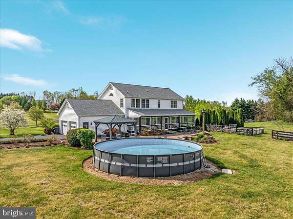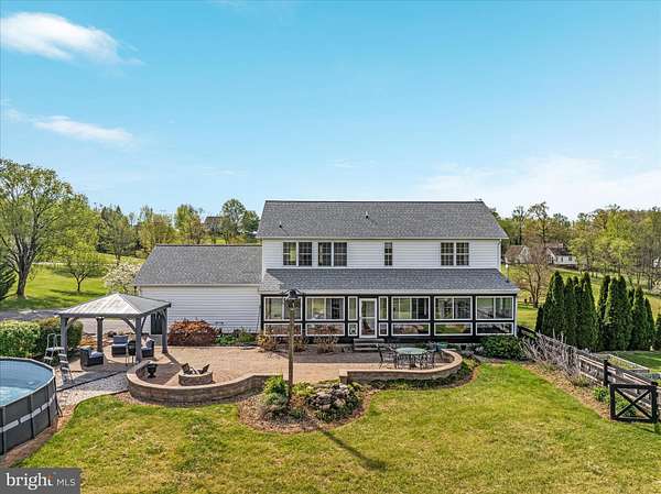 There's a feeling of serenity when you travel down the paved drive, you've finally reached your happy place where there's plenty of room to breathe, inside and out. Three (3) acres of lush grounds, with fruit trees, raised beds, and pastoral mountain VIEWS from the backyard patio that'll leave you speechless! This lovely home flows with ease inside and awaits the laughter of your family and friends to fill it! Spacious and open with room to host birthday parties and yet elegant and comfortable for quiet dinners with friends. Having over 3500 sq ft with 3 bedrooms and 3.5 baths over 3 levels of living. The main level showcases a wonderful kitchen with center island prep area and seating, coffee bar, farm sink and gas range plus huge walk in pantry, this space opens to breakfast area seating or expanded family room with built-ins and gas fireplace, a formal dining room and living/office space, plus powder room and ample laundry. Elongated windows let the outdoors inside to enjoy the surrounding beauty. A sun room connects indoor with outdoor living, allowing for extended 3 season use from a wall of windows offering passive heating. On the upper level you'll find two bedrooms served by a full bath and a primary suite with views of morning sunrises to evening sunsets, a full bath with dbl sink vanity, tiled shower and soaking tub, and walk in closet space. The lower level is a perfect retreat for movie night or game room having built in shelving and fireplace. Also ideal for an in-law suite with mini-kitchenette with sink and a full bath. You'll also find the utilities room with newer hvac and a water system, plus plenty of storage. And if this wasn't already enough, take a look at the outdoor living - the views are stunning! A spacious hardscaped patio, covered seating with a sturdy pergola and an above ground pool to convey. Imagine this view every morning and an open star lit sky above you each night. There's more, the detached garage has it's own electric panel and heated floors from the outdoor wood furnace, that conveys plus an RV carport with electrical hookup. Finally there's a garden shed or maybe convert it to the play house! You'll move in and never want to leave........