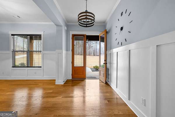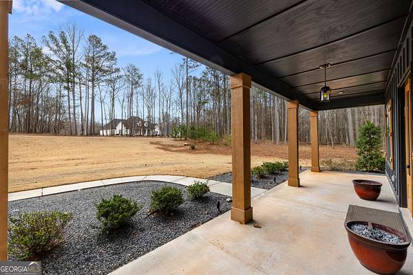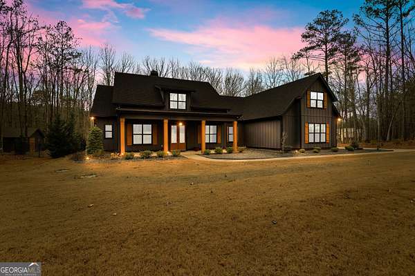 Welcome to refined country living in The Farm at Lawshe. Tucked down a private drive on FIVE serene acres, this 2020 custom-built estate offers the perfect balance of peaceful seclusion and convenient access to Senoia's charming downtown filled with unique boutiques and locally loved restaurants. Thoughtfully designed, this ranch-style home features FOUR BEDROOMS and THREE-AND-A-HALF BATHROOMS on the MAIN LEVEL, plus a spacious FIFTH BEDROOM AND FULL BATHROOM privately situated above the three-car garage-ideal for guests or a flex retreat. Inside, open-concept living unfolds beautifully. A welcoming dining room flows into the fireside living room, complete with custom built-ins, while the breakfast room, with ship-lap detailing opens through french doors to a stunning screened porch with stained wood accents-perfect for slow mornings or evening gatherings. The kitchen is both refined and practical, offering stainless steel double ovens, a cooktop, farmhouse sink, oversized island with seating, and a walk-in pantry outfitted with a custom storage system. The primary suite features a trey ceiling accented in shiplap and ensuite bath with a tiled shower, free standing tub, dual vanities, and a custom walk-in closet that conveniently connects directly to the well-appointed laundry room. Ample cabinetry, storage, and a strategically placed half bath provide seamless access for poolside living. Three additional main-level bedrooms offer space and comfort-one featuring its own private bath, while the other two connected by a generously sized Jack-and-Jill bathroom, providing both functionality and privacy for family or guests. Outdoors, great amenities await. A 16' x 32' PebbleTec IN-GROUND POOL is framed by concrete pavers and surrounded by crushed gray slate for a clean, tailored aesthetic. The fenced rear yard-enclosed in coated black aluminum-overlooks a private, wooded backdrop, creating a peaceful setting for relaxation or entertaining. A 12' x 20' SHED with a small fenced area behind offers versatility for storage or pets. **Additional highlights include 3 car garage, spray foam insulation, irrigation system, mud bench, and a small butlers pantry. There is much to appreciate, come see for yourself!