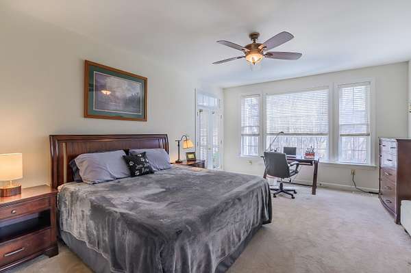 - Book Shelves, Ceiling Fan, Fireplace, Jetted Tub, Smoke Detector, Storage, Walk-In Closet