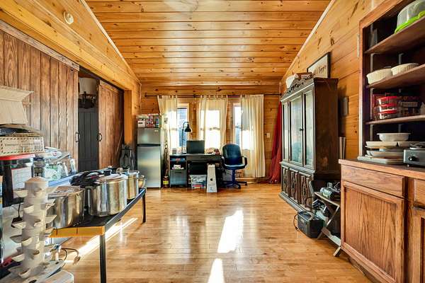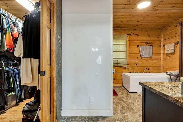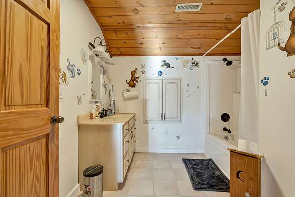 - Bathroom Mirror(s), Cathedral Ceiling(s), Kitchen Island, Walk-In Shower