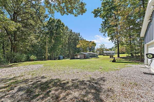 Welcome to your slice of the country! This beautifully maintained home sits on 3.7 acres offering peace, privacy, and room to grow. Inside you'll find a spacious living area filled with natural light, a functional kitchen with plenty of cabinetry, and a split bedroom layout that provides privacy for the primary suite. Updates throughout include kitchen appliances and light fixtures less than 4 years old, new roof (2 years), HVAC (less than 2 years), new flooring (carpet and pads and laminate - last year), fresh paint throughout, and the crawlspace was recently encapsulated. There is a full house generator fueled from the propane tank on property - so no need to worry during power outages! One detached 25x30 building, with a wood burning stove and HVAC unit and a second 26x27 garage with a full commercial air compressor installed. The wooded lot in the back of the property offers additional privacy, as well. Home is on permanent foundation and is considered Real Property. Lender credit offered with preferred lender, call for details!