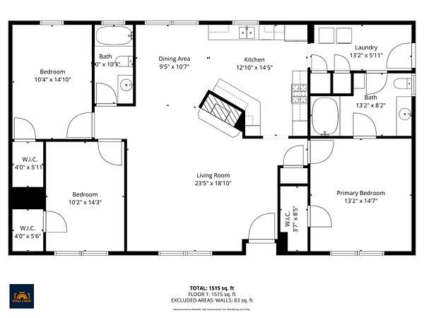 - Bedroom x 3, Kitchen, Living Room, Master Bathroom