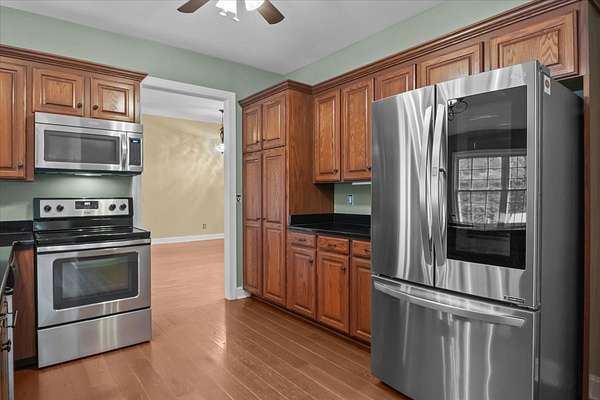 - Cooktop, Dishwasher, Disposal, Dryer, Electric Oven, Microwave, Refrigerator, Stainless Steel Appliance(s), Washer