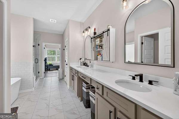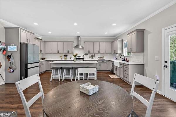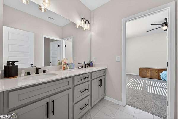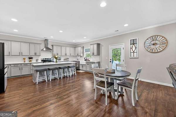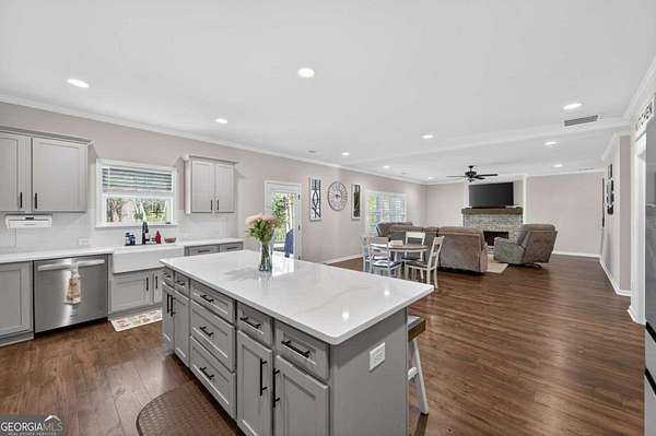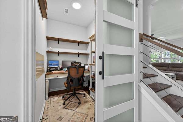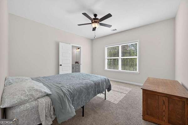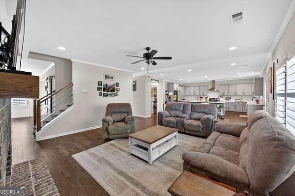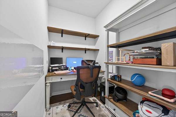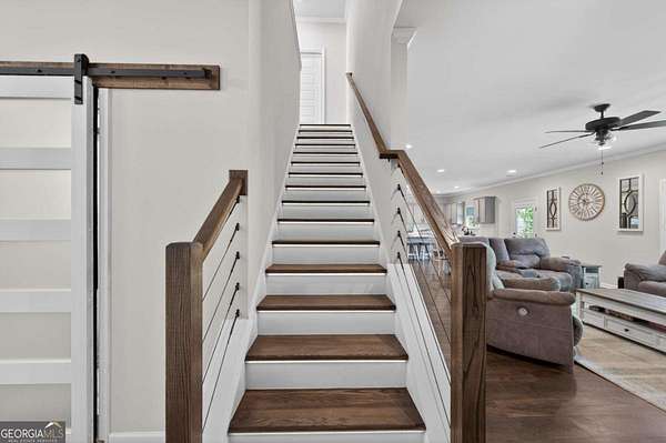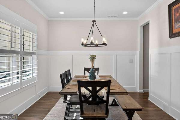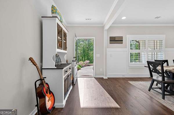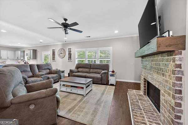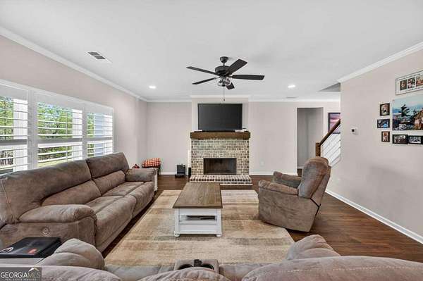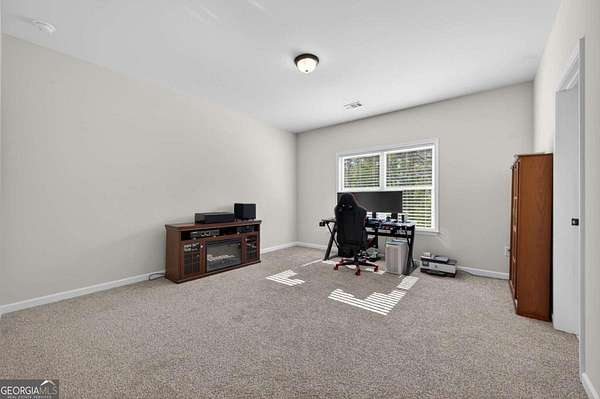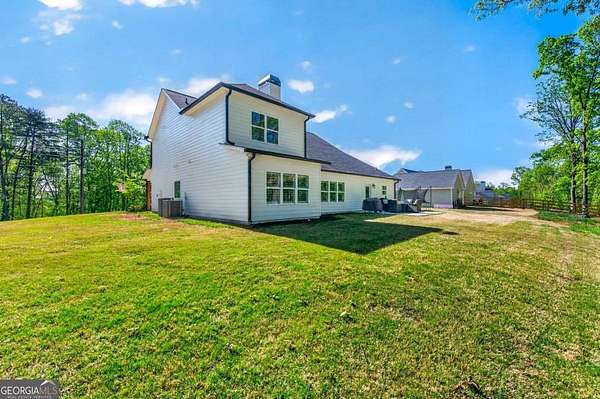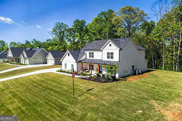 Built in 2024, this beautifully appointed 4-bedroom, 3.5-bath home in Rivermont offers 3,135 sq ft of thoughtfully designed living space in one of Dahlonega's newest communities. The inviting front porch welcomes you with a custom built swing to sit and enjoy your morning coffee or afternoon wine. The open main level is made for everyday comfort, featuring a family room with fireplace and a chef's kitchen appointed with quartz countertops, pot filler, custom pantry, and stainless steel appliances. The main-floor master suite impresses with an extended bath offering a soaking tub, large tile shower with built in bench, and custom walk-in closet. A private office and half bath complete the main floor. Upstairs, three spacious bedrooms and two full baths provide room for everyone. Also, a extra walk in unfinished attic room that is great for storage. What truly sets this home apart is the impressive list of upgrades already in place - Custom shutters, epoxy garage floor, water softener, sprinkler system, Govee permanent outdoor lighting, stair lighting, utility sink in laundry, hood vent, and a Ring camera system, to name just a few. Nothing has been overlooked. Situated in the North Georgia foothills just minutes from downtown Dahlonega, this is a rare opportunity to own a like-new home with all the extras already done.