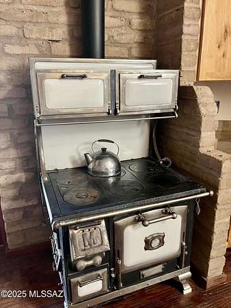 STUNNING Authentic ''Mud Adobe' Hacienda w/Striking features throughout. Built on 12'' torsion bar tension slab w/16'' adobe ext. walls. Great Rm w/ High saguaro ribbed ceilings, 16'' hand hewn viga beams, 2 fireplaces & built-in wet bar. Chef's kitchen boasts Granite island, prep sink, commercial grade appliances, Sub Zero Refrig., Viking dual gas stove, double ovens, Antique cook stove & solid Mesquite wood flooring. Marble counters tops in R/R, walk-in shower & Huge walk-thru closet. Home office w/hand peeled latillas ceiling & solid mesquite flooring w/solid wood doors. Custom built 42x52 4 door block SHOP w/ RV bay, work counters. Great private well w/new pump/pressure tank put in 2024. New Int. paint in primary suite, Roof warranty at home & shop. Amazing MTN views, u/g power, Wow