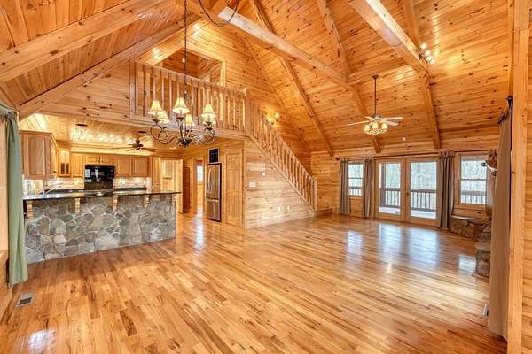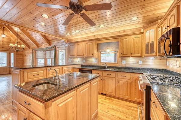 Escape to your own Blue Ridge retreat: a 4 bed, 3 bath single-family home with a detached 2-car garage, setback for privacy on 2.77 acres in the gated Shepherd's Ridge community with paved road access and located about 8 miles from Blue Ridge, GA. Warm, all-pine interiors pair with cedar closets, granite throughout, and an all-wood quality kitchen. Enjoy three fireplaces: a stone centerpiece in the living room, another in the main-level primary suite, and a third in the downstairs living area. The layout includes an upstairs loft and bathrooms on each of three floors. Outside, savor the porch's custom wood-carved swing, a den with French doors leading to the firepit, and a custom garden shed with electricity. Practical upgrades shine, brand new roof and deck staining, plus $30,000 in upgrades completed as of 8/8/25, along with a smart thermostat and new locks on all doors. The detached 2-car garage includes electricity and a workshop. Schedule your private showing and experience the secluded setting and turnkey improvements firsthand.