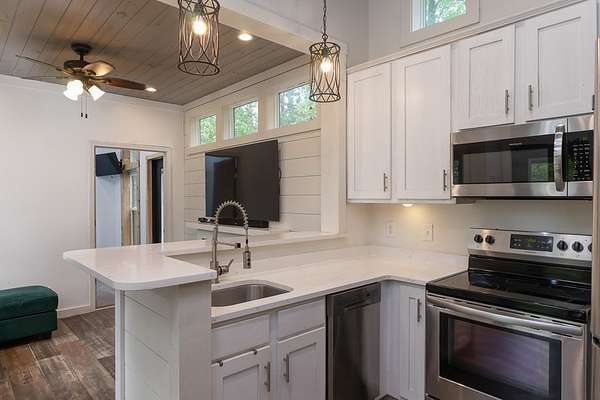 Tucked in the tranquil Simplicity Woods of Clarks Chapel, this charming 2BR/1BA tiny home is a perfect blend of comfort and functionality. Outside, you will find a nice fire pit and a fenced-in area for pets to roam, children to play, and/or an area for gardening. Inside, the bright and airy layout features stainless steel appliances, a breakfast bar for casual dining, and a loft for extra storage or creative space. Whether you're looking for a cozy full-time home, peaceful weekend escape, or investment property, this gem offers big potential in a beautiful natural setting.