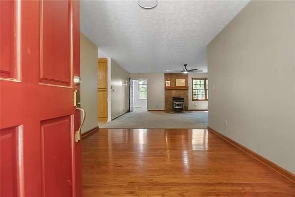 This craftsman style ranch home offers a unique blend of tranquility and convenience, nestled on a cul-de-sac, with over three acres of picturesque, wooded land on a private lake. As you approach via the long driveway, you'll be greeted by the serene ambiance of nature, surrounded by lush woods and the calming presence of water. This custom-built residence boasts recent updates including a new roof and updated front porch ensuring an inviting atmosphere. Step inside to discover a spacious and thoughtfully designed interior. A large foyer welcomes you to the open family room space with custom built in cabinetry built from wood harvested from the lot. The central wood burning stove is unique and offers a sense of comfort and warmth, perfect for entertaining guests or enjoying cozy family gatherings. The sunroom is a true highlight, offering a bright and airy space to relax and soak in the breathtaking views of the lake. The kitchen features solid wood, custom cabinets, also built from the timber harvested from the lot with ample counter space and both a breakfast bar and large breakfast room, and rear deck which overlooks the lake. The large laundry area is tucked away just around the corner on the main level. As you explore further, you'll find generously sized secondary bedrooms, providing comfort and privacy for family members or guests. The home offers a large two-car garage, complete with a storage room to accommodate all your organizational needs. There is also a storage shed in the back. The finished basement nearly doubles the living space. Enjoy an additional family room, several flex rooms that can be used for work or additional sleeping space, and an ensuite, many rooms with daylight views of the lake. This home has natural landscaping that enhances the beauty of the lakefront setting. It's a perfect retreat for those seeking a peaceful lifestyle without sacrificing convenient access to necessities. This home truly represents the ideal blend of comfort, style, and location, making it a rare find in today's market.