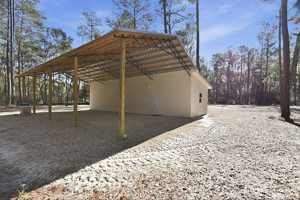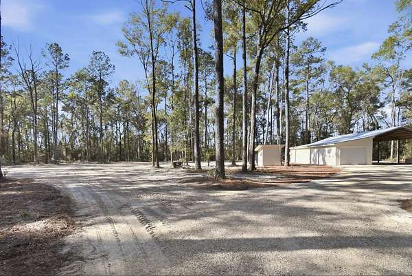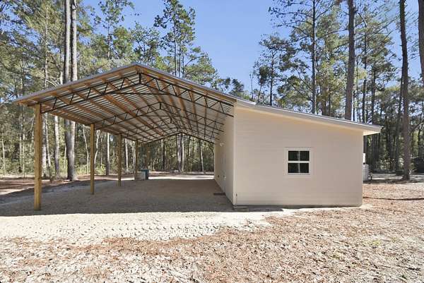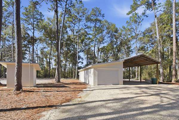 Workshop with attached pole barn built in 2024 on 5.67 acres. Beautifully wooded square shaped lot with mature trees. Located in the Woodland Heritage neighborhood with no HOA. Agricultural zoning with no animal restrictions. Workshop is 768 square feet and has fiber cement siding, a metal roof, a through the wall air conditioner with heater, a PGT impact window, a garage door that is 12 feet wide by 8 feet tall, and an automatic garage door opener. Attached pole barn is 24 feet by 48 feet and has electric hook up for an RV. Shed is 5 feet by 8 feet and has fiber cement siding, a metal roof, electric, and was built in 2024. Deep well, underground power, gated entrance, limestone gravel driveway, outdoor fire pit, Starlink internet, and 2 hard wired exterior Ring floodlight cameras. Fill has been brought in and a house pad started. Build your dream home or put a mobile home on it. Mobile homes are permitted. Recent survey, site/soil evaluation, elevation certificates, and house plans available. Site/soil evaluation described land as mostly level wooded upland with excessively drained soil. Located in flood zones A and X with no wetlands or conservation areas. Workshop with attached pole barn, shed, and house pad are located in flood zone X. There is a very large cat face pine near the property line which is a living remnant of the areas historic turpentine industry. Country living yet close to town and the Gulf Coast. 4 miles from Wakulla Springs. 6 miles from Leon Sinks Geological Area/Apalachicola National Forest. 7 miles from Upper Bridge Boat Ramp - Wakulla River. 9 miles from St. Marks Historic State Trail which is a 16 mile stretch of converted railway that lets bikers and hikers go from the Florida's Capital to the coastal community of St. Marks. 12 miles from Newport Park Boat Ramp - St. Marks River. 14 miles from St. Marks River Boat Ramp and St. Marks waterfront dining. 16 miles from Shell Point Beach. 16 miles from Tallahassee International Airport. 16 miles from Florida State University. 18 miles from Tallahassee Memorial Hospital. Agent/Owner.