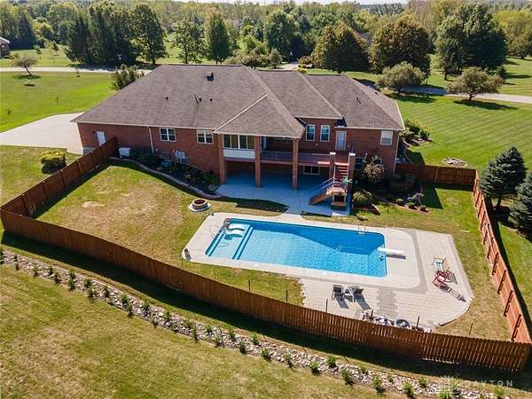 Offered below appraised value! This stunning 6-bedroom, 5.5-bathroom ranch home blends luxury, comfort, and technology. Located in the Conservancy development, it is designed to impress at every turn! Set on a walk-out basement, this home seamlessly connects indoor living with outdoor entertaining. Step outside from either the main level or lower level and you're greeted by a covered porch leading to a spectacular 20x40 heated saltwater pool (2022) featuring a sunning deck, fountains, color-changing lights, and an 8-ft deep end with diving board. The pool is fully integrated with the Water Guru app, keeping you updated on available lighting changes, pH balance, and water temperature. A privacy fence (2021), firepit, paver patio, and over 50 trees/shrubs planted in 2024 complete the backyard oasis. The home's main level offers 4 spacious bedrooms, including a luxurious primary suite with access to the back deck, dual closets, dual vanities, a jetted tub, and tiled walk-in shower. Two bedrooms share a Jack-and-Jill bath, while the fourth enjoys its own ensuite and walk-in closet. The chef's kitchen is equipped with a gas cooktop, double ovens, expansive counters, and a large pantry. All kitchen appliances were new in 2021. The lower level is designed for entertainment and versatility, featuring 2 additional bedrooms, 2 full bathrooms, a full kitchen, laundry area, home gym space, and a theater room equipped for the ultimate movie night. Additional highlights include a Generac 22kW whole-home generator with weekly, automatic, self-checks plus a new roof in 2019. The garage offers over 1400 sq feet of space plus wi-fi connectivity to operate garage doors (only a few years old), lighting, locks, and more. This property offers a rare combination of modern luxury, functional design, and resort-style living--perfect for family life, entertaining, or hosting guests!