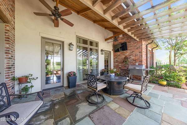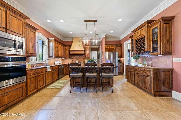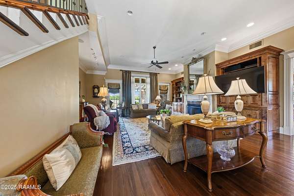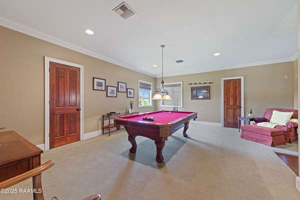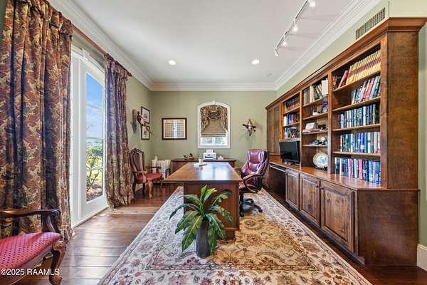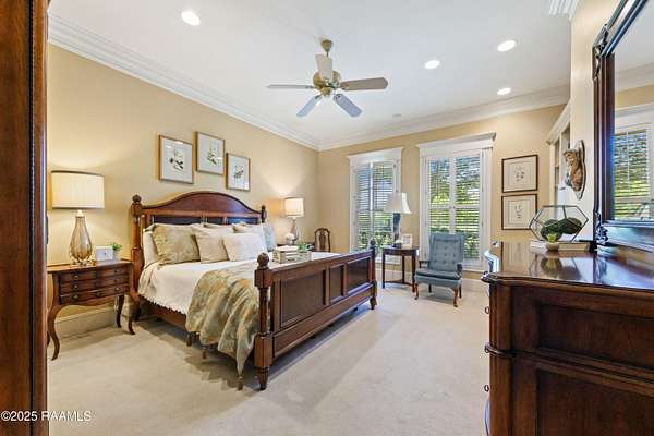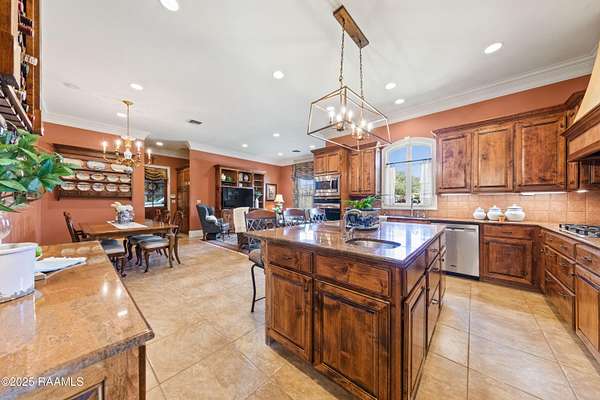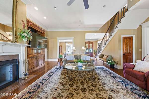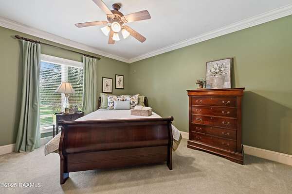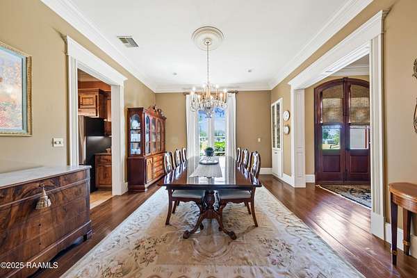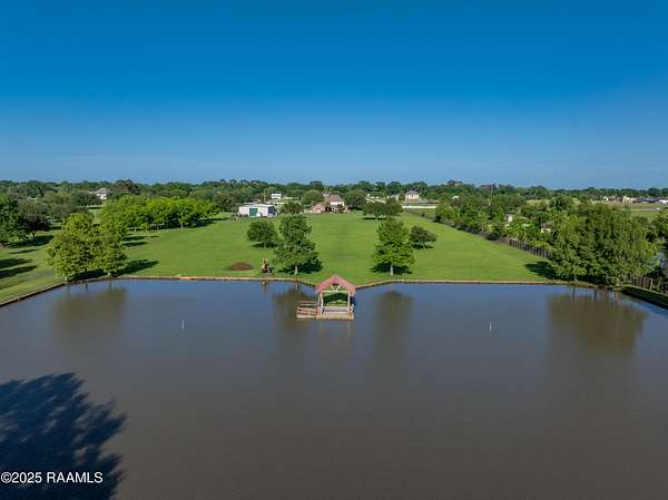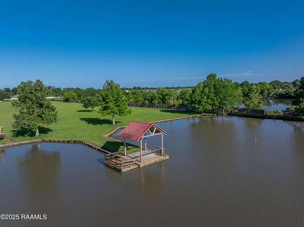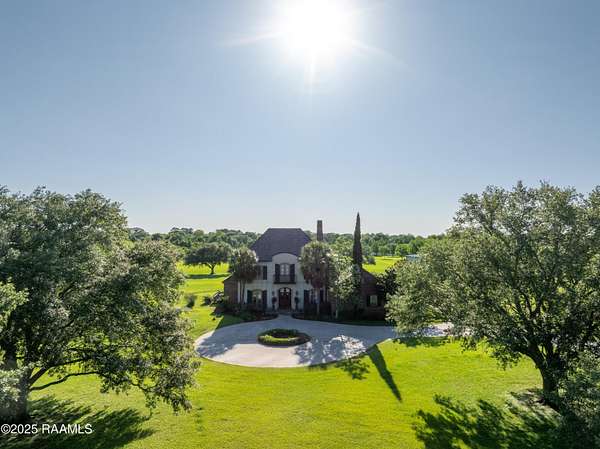 Flood Zone X, No Flood Insurance Required (LOMA Letter on File). New Price improvement! Located in the desirable Fortune Estates Subdivision, this custom Country French estate is an exceptional blend of architectural elegance & everyday functionality on 10.24 sprawling acres. Built in 2003, the home spans 4,516 square feet w/ 4 bedrooms, 3.5 baths, a 3 car garage & a whole-home generator. A 4,000 square foot metal workshop with two roll-up doors & a half bath provides valuable space for storage, hobbies, or equipment needs. A 1.5+ acre pond with a dock & pavilion adds a tranquil focal point to the beautifully maintained grounds. Inside, the kitchen combines classic finishes w/ practical design. Granite countertops, custom wood cabinetry, stainless steel appliances, a large island & walk-in pantry support everyday cooking and entertaining. A cozy seating area & breakfast nook offer casual spaces that flow easily into the heart of the home. The formal dining room features hardwood flooring, arched windows, a built-in display cabinet & seamless access to the main living area. The living room showcases tall ceilings, extensive crown molding, fireplace, built-in cabinetry & French doors that open to the rear patio. A private office is finished w/ antique pine flooring, custom shelving, and access to the primary bath. The primary suite features plantation shutters, dual vanities, granite counters, a soaking tub, walk-in shower, and a custom closet system. Additional features include a guest suite with full bath, a half bath, a well-equipped laundry room, and an upstairs layout offering two bedrooms, a Hollywood bath, a spacious recreation room, and a heated and cooled storage room. Outdoors, enjoy a slate tile patio w/ pergola, spa & lush landscaping. Ideally located with easy access to Youngsville, Broussard, and Lafayette. You must experience the quality, space & timeless design of this estate in person.