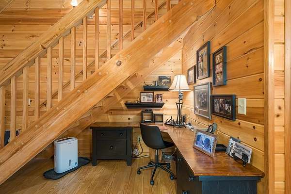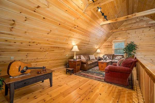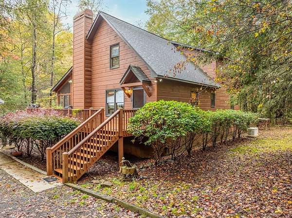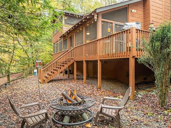 Imagine 250 Feet of Mountaintown Creek Frontage! Tucked away in a gated community on 2.75 private acres, this stunning 3BR/2BA + large loft cabin offers the perfect blend of craftsmanship, comfort, and natural beauty--all at a price with serious wow factor! This rustic home welcomes you with an open floor plan featuring a spacious kitchen with granite counters, stone backsplash, and a center dining island perfect for entertaining. The inviting living room boasts a floor-to-ceiling stone fireplace and opens to an expansive screened-in porch overlooking the peaceful sounds and views of Mountaintown Creek. Two guest bedrooms and a well-appointed shared bath are located on the main level, along with a convenient laundry area. Upstairs, the large loft leads to a Florida-sized primary suite complete with a luxurious bath featuring double granite vanities, a jetted soaking tub, and a separate tile shower. Step outside to your private screened balcony and take in the sights and sounds of the creek below. Outside, enjoy evenings around the firepit, tinker in your separate workshop, or simply relax and take in the serenity. With a Newer Roof (2020), New HVAC (2024), plenty of parking, a Generac generator, and tons of privacy, this property checks all the boxes for full-time living, a second home, or a mountain getaway. Mountaintown Creek is stocked with Trout in November and perfect for catch and release.