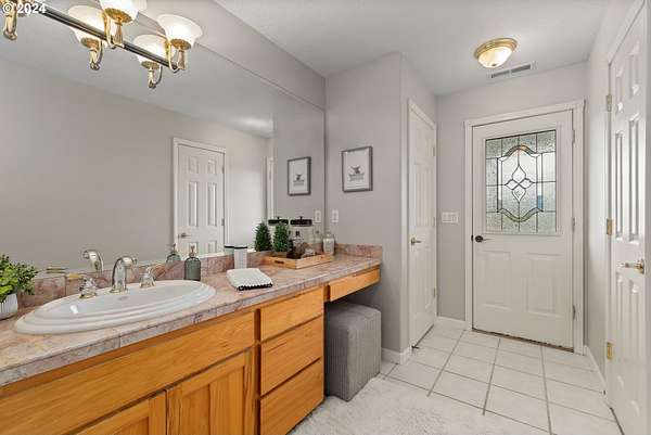 - Ceiling Fan, Central Vacuum, Garage Door Opener, Hardwood Floors, Laundry, Tile Floor, Water Softener
