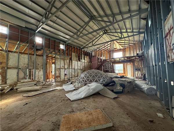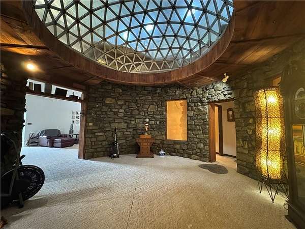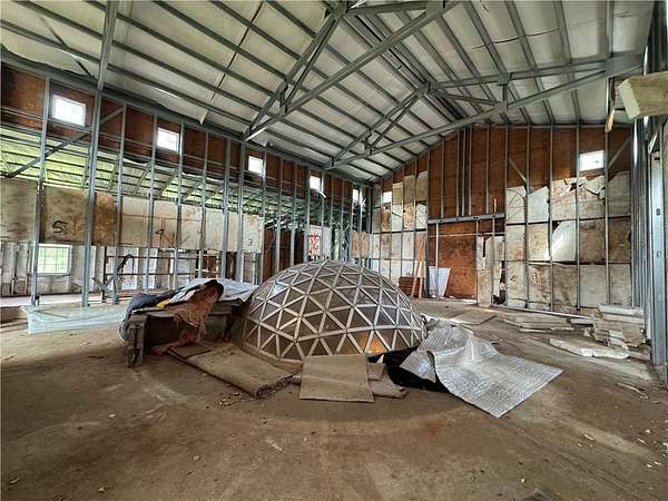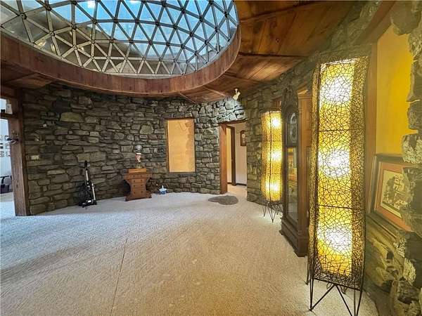 Anything but ordinary! Tucked into the hillside on Pine Hill Rd, on 1.63 acres of land, this circular concrete home offers nearly 2,000 sq ft of fully finished, livable space on the main level, anchored by a striking rock room with an atrium above that once filled the space with natural light. Imagine a stunning spiral staircase leading to the second level, where over 3,000 sq ft is already framed, wired, roofed, windowed, and partially plumbed, ready for your design to take over. With the right vision, this could be a true architectural statement. Downstairs would be great for a multi-generational suite, offering the peace of mind of having your loved under the same roof while enjoying your own privacy on the second floor. Exterior stonework could be tied in beautifully to bring it all together. There's also a two-car garage, plus a massive attached shop with oversized doors tall enough for an RV and a half bath, perfect for projects or storage. This is a rare chance to create something unforgettable! SOLD AS IS.