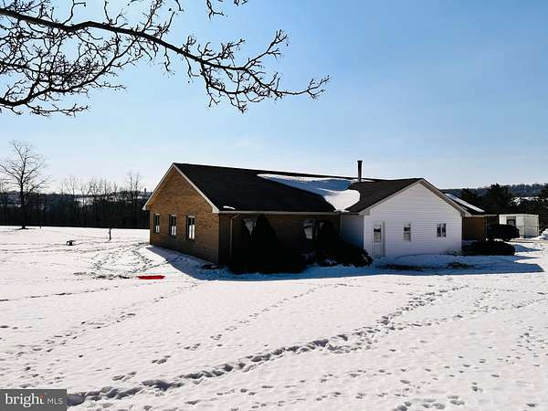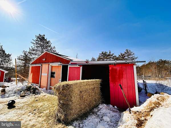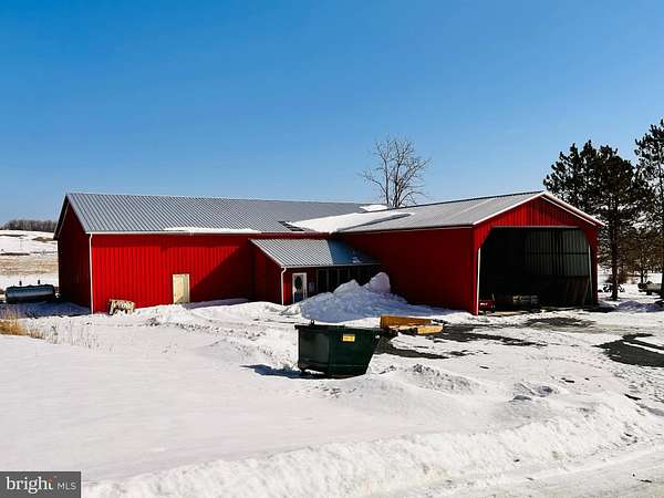 Glorious farmette with gorgeous views, fence pastures, partially wooded area and enormous 6200 sq foot pole building! This ranch home is spacious with a primary suite with full bath and walk in closet. Kitchen/dining area has potential for a large island and more cabinetry. Living room overlooks the pasture areas and wooded section of the property. Electrical, HVAC, plumbing and garage door still intact and easily reconnected. Furnace still remains as well. 30 acres of fenced in pasture areas currently used for sheep and horses. 15 wooded acres recently select cut but have other trees that remain which could be select cut or for future harvest. Huge pole building has a loading dock, metal roof and is ready for workshop, garage, storage or business. Extra high doors allow for large trucks or RVs. Property has a spring which is piped to the pasture areas. Family room has the mechanical closet and garage door remains. Garage shed for another parking spot or storage.