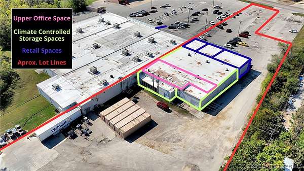 Ideally situated just minutes from Lake Ozark & Osage Beach, this commercial property offers exceptional visibility & access, located adjacent to Wal-Mart with 89 feet of Business 54 highway frontage & high daily traffic counts. Set on 2 acres, the property features a versatile mix of income-producing spaces, including a shopping center and a climate-controlled storage facility, featuring 3 storefronts, 3 office units & 40 storage units in various sizes to accommodate all needs. Recent improvements include a newer roof and fresh exterior paint. The property maintains a strong 85% occupancy rate, supported by 24-hour security and ample parking. Don't miss this rare chance to own a well-positioned, income-producing commercial investment in one of Eldon's most visible locations. Schedule your private showing today!